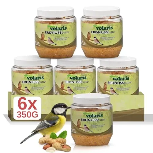 Kategorie: Vogelfutter - Eggersmann volaris - GTIN:4029862070675 - Eiweiß- und energiereich: das hochwertige Wildvogelfutter enthält Getreideflocken, Sonnenblumenkerne, Erdnüsse und Mehlwürmer. Der hohe Protein- und Fettgehalt versorgt die Vögel mit wertvoller Energie. Vogelfutter ohne Schale Das schalenlose Streufutter mit Insekten hinterlässt keine Schalenreste auf Balkon und Terrasse. Dadurch ist das Vogelfutter perfekt für die Fütterung in der Nähe des Hauses. GANZJAHRESFüTTERUNG - Egal ob Sommer oder Winter - dank der vielseitigen Zusammensetzung ist die Mischung ideal für die Ganzjahresfütterung geeignet und versorgt die Vögel mit wichtigen Nährstoffen. FüR ALLE VOGELARTEN - Egal ob Meisen, Amseln, Rotkehlchen oder andere Wildvögel - die Terrassenkörner mit Insekten sind für alle Wildvogelarten geeignet. Perfekt zum Füttern in Futterspendern, Futterspendern oder Auslegen MADE IN GERMANN - Alle Eggersmann-Produkte werden ausschließlich in eigener Produktion im Weserbergland hergestellt. Wir achten auf höchste Qualität und Nachhaltigkeit. überzeugen Sie sich selbst! - 14,99 Euro bei Amazon Marketplace Lawn & Garden - gefunden von billiger.de Erdnussbutter für Wildvögel ist ein kalorienreiches Fettfutter, das besonders in kalten Monaten geschätzt wird. ![]() ![]() Eggersmann volaris 6 x 350g Premium Erdnussbutter für Wildvögel - Kalorienreiches Fettfutter - Erdnussbutter Vögel im Kunststoff - Glas (6 x 350 g, Natur)
