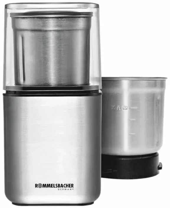 38 Händlerangebote bei billiger.de - Kategorie: Kaffeemühlen - Rommelsbacher - leistungsstarker Motor, leise im Betrieb, hochwertiges, pflegeleichtes Gehäuse aus gebürstetem Edelstahl robustes Schlagwerk, Mahlgrad über die Mahldauer individuell einstellbar Ein/Ausschalten per Druck auf Gehäusedeckel, einfache Bedienung und sichere Handhabung abnehmbare Teile spülmaschinengeeignet, abnehmbarer, transparenter Deckel, integrierte Kabelaufwicklung Inklusive: 2 auswechselbare Behälter aus Edelstahl, extra große Füllmenge: 70 Gramm: Mahlbehälter mit 2-flügeligem Edelstahl Schlagmesser, Universalbehälter mit 4-flügeligem Edelstahl Spezialmesser; Kaffeelot mit Reinigungsbürste - GTIN:4001797865007 ![]() ![]()