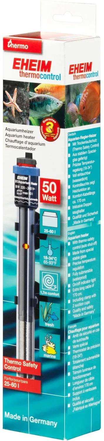 Aquarien & Zubehör Gesamtsortiment Tierbedarf Fisch Aquariumtechnik Haustierzubehör - EAN:4011708361191 - Verstellbarer Heizkörper für Aquarien von 20 bis 1000 Litern. Eheim Aquarium Controller Heater 25W - Länge: 243mm, Durchmesser: 36mm, geeignet für Aquarien von 20-25L. Eheim Aquarium Controller Heater 50W - Länge: 243mm, Durchmesser: 36mm, geeignet für Aquarien von 25-60L. Eheim Aquarium Controller Heater 75W - Länge: 270mm, Durchmesser: 36mm, geeignet für Aquarien von 60-100L. Eheim Aquarium Controller Heater 100W - Länge: 319mm, Durchmesser: 36mm, geeignet für Aquarien von 100-150L. Eheim Aquarium Controller Heater 125W - Länge: 319mm, Durchmesser: 36mm, geeignet für Aquarien von 150-200L. Eheim Aquarium Controller Heater 150W - Länge: 345mm, Durchmesser: 36mm, geeignet für Aquarien von 200-300L. Eheim Aquarium Controller Heater 200W - Länge: 406mm, Durchmesser: 36mm, geeignet für Aquarien von 300-400L. Eheim Aquarium Controller Heater 250W - Länge: 452mm, Durchmesser: 36mm, geeignet für Aquarien von 400-600L. Eheim Aquarium Controller Heater 300W - Länge: 506mm, Durchmesser: 36mm, geeignet für Aquarien von 600-1000L. - gefunden von Kelkoo ![]() ![]() Eheim ThermoPreset - Heater 50W eBay - 25c Preset Plug & Play Aquarium Heizung Neu in OVP