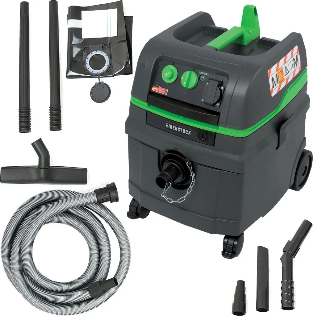 10 Händlerangebote bei billiger.de - Kategorie: Nass-/Trockensauger - Eibenstock - Eigenschaften: Elektronisch geregelter Sanftanlauf mit Einschaltverzögerung, Nachlauf Gerätesteckdose mit Einschaltautomatik für Elektrowerkzeuge Volumenstromanzeige - optische und akustische überwachung der Saugleistung Gleichbleibend hoher Volumenstrom - Erhöhung der Standzeit der Filter, Reduzierung von Zeit und Kosten Wassererkennung mit Sensorabschaltung Zwei Polyesterfilterkassetten - gute Filterwirkung, langlebig, einfach abzureinigen Filteroberfläche 8.600 cm2 - hohe konstante Saugleistung Automatische, elektromagnetische Impuls-Filterabreinigung (Rüttelautomatik) - Reinigung des Filters, Arbeiten ohne Filtersack, vollständige Abreinigung der Kassetten Kompaktes Design - geringere Bauhöhe, gleiches Nutzvolumen Spezial-Kunststoffbehälter - sehr standsicher durch tiefliegenden Schwerpunkt, leichte Entleerung Ablagefläche für Zubehör oder Maschinen Schlauchfixierung am Kunststoffbehälter mit Bajonettverschluss und Drehausgleich Schlauchenden zusammensteckbar - einfache Schlauchverlängerung, staubfreier Transport Volumenstromüberwachung auf unterschiedliche Schlauchdurchmesser einstellbar Anwendung: Absaugen von Arbeitsstäuben (trocken) und Arbeitsschlämmen (nass) Reinigen von Baustellen, -fahrzeugen Lieferumfang: Eibenstock DSS 25 M Nass-Trockenstaubsauger Im Karton 5 m Saugschlauch ( 35 mm) 8 m Kabel Universaladapter Grobschmutzbodendüse Fugendüse Griffrohr mit Nebenluftschieber 2 ... Dieser Industriestaubsauger DSS 25 M von Manomano.de ist eine solide Option für Anwender, die eine zuverlässige Staubklasse M Absaugung benötigen. ![]() Manomano.d e