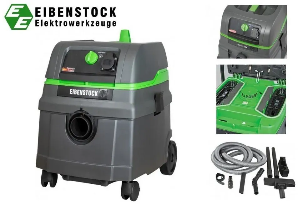 Kategorie: Nass-/Trockensauger - Eibenstock - GTIN:4026851013170 - Eigenschaften: Automatische, elektromagnetische Impuls-Filterabreinigung (Rüttelautomatik) Reinigung des Filters, Arbeiten ohne Filtersack, vollständige Abreinigung der Kassetten Elektronik Sanftanlauf mit Einschaltverzögerung und Nachlauf Volumenstromanzeige optische überwachung der Saugleistung Gleichbleibend hoher Volumenstrom Erhöhung der Standzeit der Filter, Reduzierung von Zeit und Kosten Wassererkennung mit Sensorabschaltung Zwei Polyesterfilterkassetten gute Filterwirkung, langlebig, einfach abzureinigen Filteroberfläche 8.600 cm2 hohe konstante Saugleistung Kompaktes Design geringere Bauhöhe, gleiches Nutzvolumen Spezial-Kunststoffbehälter sehr standsicher durch tiefliegenden Schwerpunkt, leichte Entleerung Ablagefläche für Zubehör oder Maschinen Schlauchfixierung am Kunststoffbehälter mit Bajonettverschluss und Drehausgleich Schlauchenden zusammensteckbar Einfache Schlauchverlängerung, staubarmer Transport Anwendung: Absaugen von Arbeitsstäuben (trocken) und Arbeitsschlämmen (nass) Reinigen von Baustellen, -fahrzeugen Lieferumfang: Eibenstock DSS 25 A Nass-Trockenstaubsauger Im Karton 5 m Saugschlauch ( 35 mm) 8 m Kabel Universaladapter Boden- und Fugendüse Griffrohr mit Nebenluftschieber 2 Saugrohre (Kunststoff) Klettband Zubehörhalterung - 499,99 Euro bei Contorion.de - gefunden von billiger.de Der Eibenstock Industriestaubsauger DSS 25 A von OTTO ist eine vielseitige Option, die sowohl beutellos als auch mit Beutel verwendet werden kann. ![]() ![]()