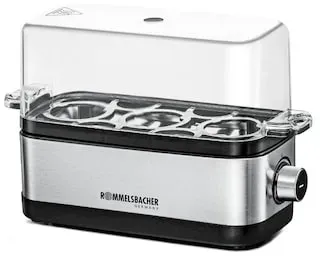 Verfügbarkeit: Sofort lieferbar, Lieferzeit max. 1-3 Werktage - Kategorie: Eierkocher - Krups - GTIN:3045380024748 - ¢ Leistung: 400 Watt ¢ Kocht bis zu 7 Eier ¢ Summersignal und Ein-/Ausschalter ¢ Wasserdosierer mit integriertem Ei-Pick ¢ Eierhalter und Klarsichthaube - 31,90 Euro bei Cyberport - gefunden von billiger.de Der Rommelsbacher ER 400 ist ein leistungsstarker Eierkocher für 1-7 Eier mit einstellbarem Härtegrad und elektronischer Kochzeitüberwachung. ![]() ![]() Rommelsbacher ER 400 Eierkocher 1-7 Eier 400W