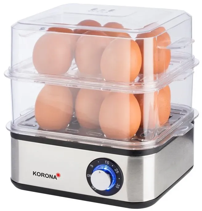 FazitFür den Alltag reicht meist ein Eierkocher im Preisbereich von 20-30 € mit einer Kapazität von 3-7 Eiern. Wenn du Wert auf hochwertiges Design und mehr Funktionen legst, lohnt sich ein Modell von WMF, Cloer oder Rommelsbacher. Achte auf die Materialqualität, die Einstellmöglichkeiten und das Zubehör, um das perfekte Gerät für deine Bedürfnisse zu finden. Jetzt live Suche nach eierkocher starten! Empfohlene Eierkocher Angebote*Durch Kufe ber Links zu Hndlern kann diese Website eine Provision erhalten, u.a. durch das eBay Partner Network und das AmazonPartnerNetDer Korona 25304 ist ein kompakter Eierkocher für 1 bis 3 Eier, ideal für Singles oder kleine Haushalte, mit einem eleganten Edelstahlgehäuse. ![]() ![]() Korona 25304 Eierkocher | 1 bis 3 Eier | Single-Eierkocher | Edelstahlgehäuse | Mit Eierhalter, Messbecher und Eierstecher | 210 Watt, Silber Schwarz