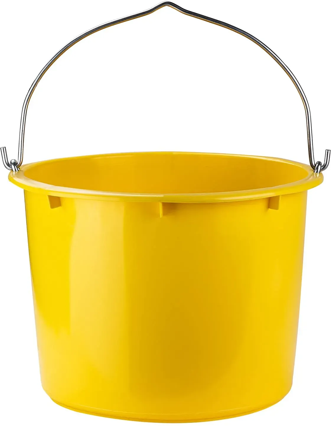 0.91 / l - Kategorie: Zubehör für Landwirtschaft - DEMA - GTIN:4031765151115 - Dema Robuster Kunststoff Baueimer gelb kranbar 20L Ausgusseimer PVC Eimer bis 41kg Robuster Kunststoff-Baueimer für den professionellen Einsatz: Der robuste Baueimer aus PVC in leuchtendem Gelb ist speziell für den Einsatz auf Baustellen und anderen Arbeitsumgebungen konzipiert. Seine stabile Ausführung gewährleistet eine zuverlässige Nutzung selbst unter anspruchsvollen Bedingungen. Praktisches Design für einfache Handhabung: Der Baueimer verfügt über einen Ausguss, der das einfache Entleeren des Inhalts ermöglicht. Mit seinem Haltebügel, der eine Mittenbiegung von 7mm aufweist, kann der Eimer problemlos an einem Kran befestigt werden, was den Transport erleichtert. Großes Fassungsvermögen und hohe Belastbarkeit: Mit einem Fassungsvermögen von 20 Litern bietet der Eimer ausreichend Platz für das Tragen und Transportieren von Materialien. Darüber hinaus kann er bis zu 41 kg belastet werden, was eine vielseitige Verwendung ermöglicht. Handlich und leicht: Trotz seiner robusten Konstruktion ist der Baueimer äußerst handlich und leicht zu tragen. Mit einer Gesamthöhe von 27 cm und einem Durchmesser oben von 37,5 cm ist er kompakt genug, um bequem transportiert und gelagert zu werden. Mit einem Gewicht von nur ca. 1,1 kg ist er zudem besonders leicht und belastet den Benutzer nicht unnötig. - 18,22 Euro bei Amazon Marketplace Home - gefunden von billiger.de Dieser Triuso Baueimer ist mit 20 Litern und kranbarer Ausführung eine solide Wahl für verschiedene Bauarbeiten. ![]() ![]() Triuso Baueimer Mörteleimer Wassereimer Zementeimer Putz Eimer 20 l gelb kranbar