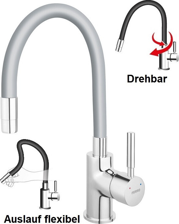 Küche Spülen & Küchenarmaturen Küchenarmaturen Zweigriffmischer für die Küche Küchenspülen, Wasserhähne & Zubehör - EAN:0606314568511 - Die Armatur mit schwenkbereich von 360°, flexibel Schwenken in alle Richtungen, besonders für Doppelspülen. Komfortabler Benutzung danke geeignet Auslauf-Winkel und Höhe. Abnehmbar BubblerKann Man den Auslauf von Hand oder mit einem Schraubenschlüssel abschrauben, um die Perlator zu Reinigung und den Austausch. Wenn Sie einen Schraubenschlüssel verwenden, wickeln Sie den Wasserauslass mit einem Tuch um, um ein Verkratzen der Oberfläche zu vermeiden. Die Armatur verbaut Keramikkartusche,hat eine gute Dichtheit und der Griff ist leicht und flexibel, mit einem guten Gefühl der Kontrolle. Hochwertige Verarbeitung - Die Spültischarmatur ist aus SUS 304 Edelstarhl für langer Lebensdauer gefertigt. Einfache Wartung dank gebürstetes Nickel Oberfläche. Schnelle Installation System mit Gewindestangen und Unterlegscheiben, kann in few Minuten abgeschlossen werden. - gefunden von Kelkoo Ein flexibler Spültischarmatur in Silber, der eine gute Balance zwischen Preis und Funktionalität bietet. ![]() kaufland.d e Ferro Spültischarmatur SILBER flexibel Einhebelmischer Wasserhahn Messing Mischbatterie Spiralfederarmatur