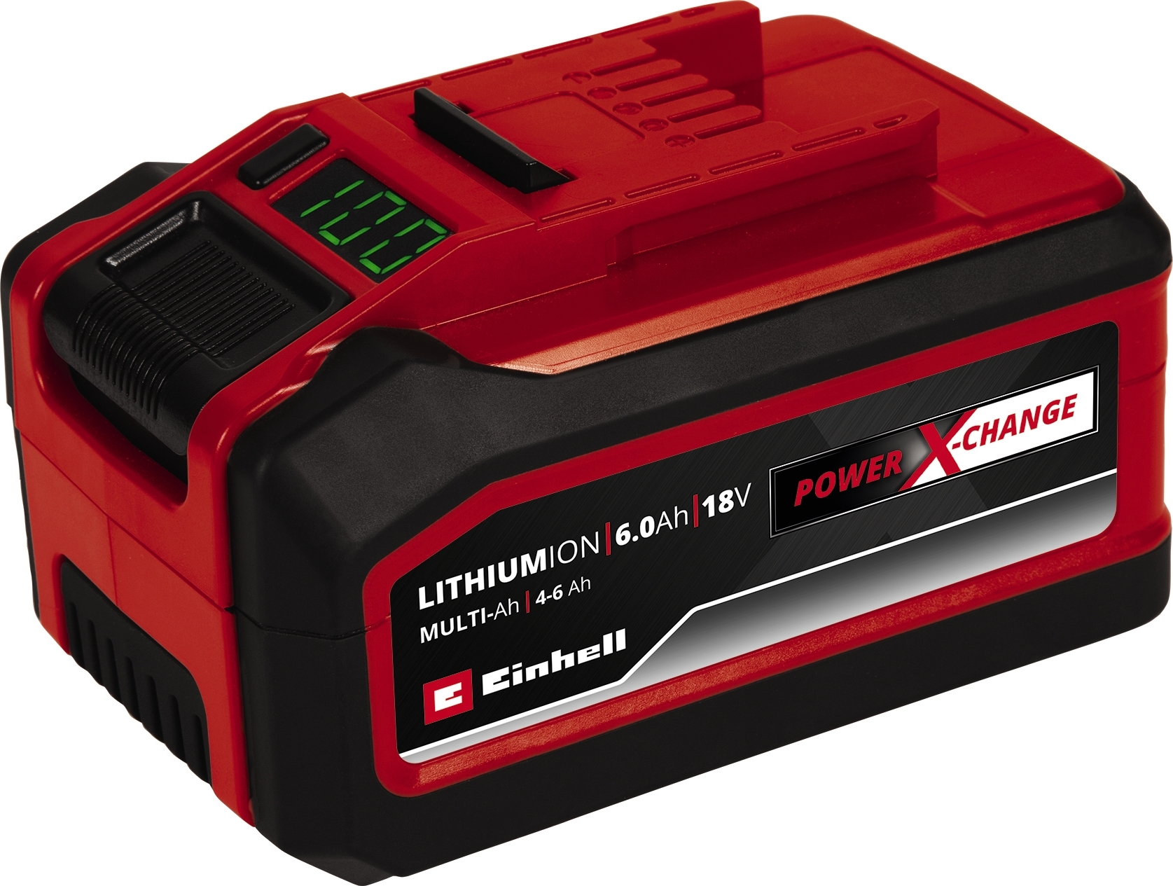 EAN: 4006825644210 - Mitglied der Power X-Change FamilieUniversell verwendbar für alle Power X-Change Geräte6Ah-Akku für max. Kapazität oder 4Ah-Akku zum schonen des Akkus für eine 3x längere Gesamtlebensdauermax. Sicherheit, optimale Geräteperformance, Laufzeit+Lebensdauerstaub-, korrosions-, und mechanisch geschütztes Gehäuse.Der Einhell 18V 4-6 Ah Multi-Ah PXC PLUS ist ein universell einsetzbarer Akku für die gesamte PXC-Produktfamilie. Mit einem Akku und einem Ladegerät für alle Geräte spart man bei der Anschaffung erhebliche Kosten, die universelle Einsatzmöglichkeit schont die Umwelt und bietet gleichzeitig Flexibilität. Dank MULTI-Ah Technologie ist der Betrieb als 6Ah-Akku für maximale Laufzeit sowie als 4Ah-Akku für eine 3x längere Lebensdauer möglich. Die neuesten Li-Ion Zellen schaffen 100 % mehr Power für max. Kraft in allen Anwendungen. Das prozessgesteuerte, aktive Batteriemanagementsystem ABS sorgt für höchste Sicherheit, optimale Geräteperformance, max. Laufzeit und max. Lebensdauer. Das Gehäuse ist gummiert für Stoßschutz + Griffigkeit..Ausstattung- Universell verwendbar für alle Power X-Change Geräte- MULTI-Ah Technologie: 6Ah-Akku für max. Kapazität oder 4Ah-Akku zum schonen des Akkus für eine 3x längere Gesamtlebensdauer- Exaktes Anzeigen des Ladezustandes in % über die Digitalanzeige- Neueste Zellen bringen 100% mehr Power für maximale Performance- PLUS-Technologie: mehr Power für leistungsintensive Arbeiten- max. Sicherheit, optimale ... Ein solides Angebot für den Original Einhell 18V 4-6Ah Multi Ah Power X-Change PLUS Akku ohne Ladegerät. ![]() ![]() Original Einhell 18V 4-6Ah Multi Ah Power X-Change PLUS (18V, verwendbar für alle PXC-Geräte, Ladezustandsanzeige, aktives Batteriemanagementsystem ABS, situativ angepasste Ladezyklen, ohne Ladegerät)