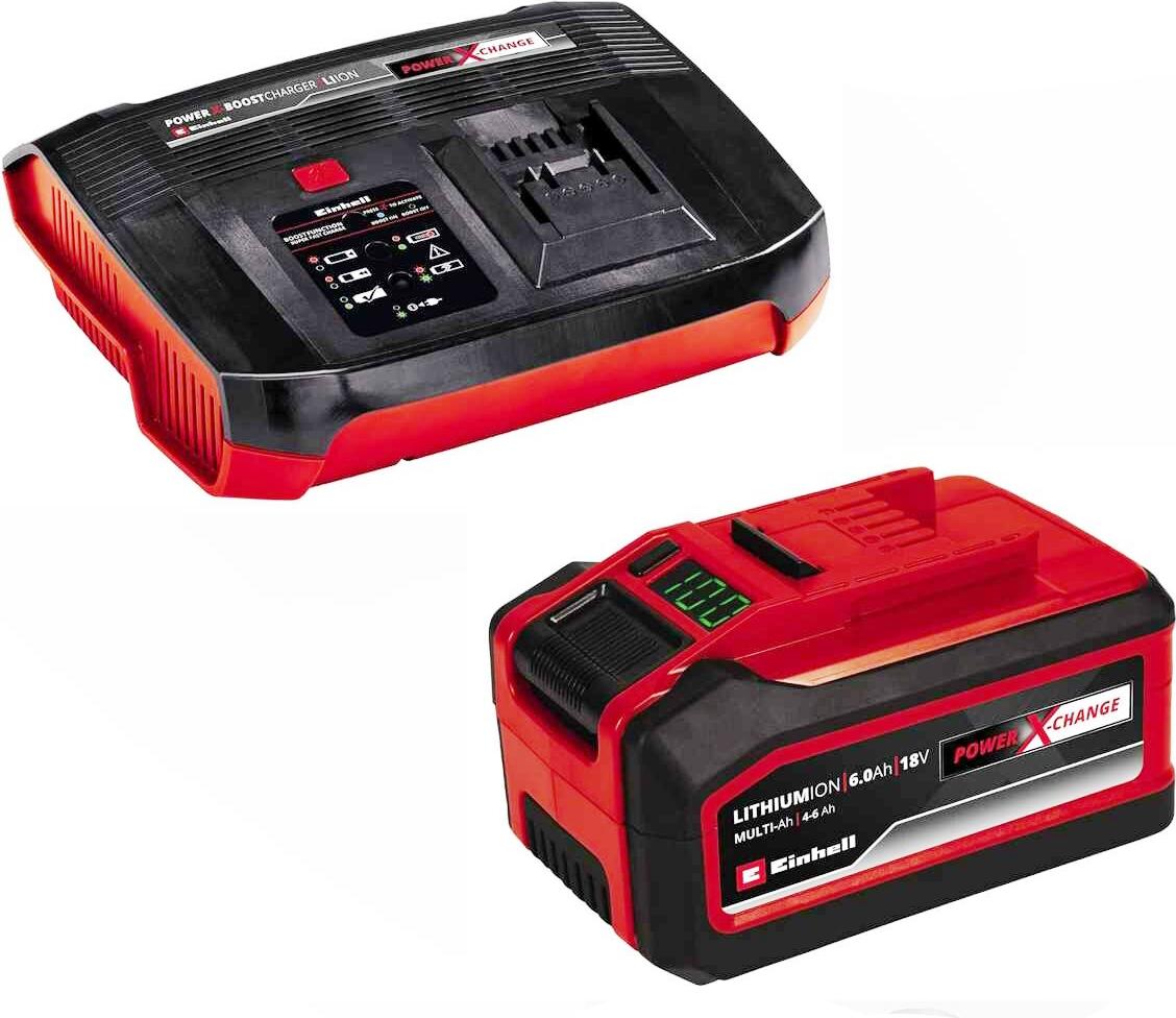 EAN: 4066738035529 - Original Einhell Starter Kit 4-6 Ah Akku und Boostcharger 6 A , Power X-Change (Li-Ion, 18 V, 60 min Ladezeit, passend für alle Power X-Change Geräte)ArtikelbeschreibungDas Einhell 18V 4-6Ah Power X-Change PLUS Starter Kit ist die ideale Basis, um sich ein eigenes Power X-Change-Sortiment zuhause aufzubauen oder auszubauen. Das Starter Kit mit einem 18V 4-6Ah Power X-Change-Plus-Akku und dem Power X-Boostcharger 6A gehört zum multifunktionalen und grenzenlos untereinander kombinierbaren Akkusystem Power X-Change von Einhell. Die universell einsetzbaren Power X-Change-Akkus versorgen alle Akkugeräte der gesamten Produktfamilie im Garten- und Werkstattbereich mit Kraft und Ausdauer. Auch die Ladegeräte der Reihe sind universell für alle PXC-Akkus verwendbar. Die Vorteile für den Kunden liegen auf der Hand: Mit einem Akku und einem Ladegerät für alle Geräte spart man nicht nur bei der Anschaffung erhebliche Kosten, die universelle Einsatzmöglichkeit schont die Umwelt und bietet gleichzeitig Flexibilität in Haus und Garten. Auch gibt es keine Unordnung und kein Chaos mit unterschiedlichsten Akkus und Ladegeräten für jedes einzelne Gerät. Dank MULTI-Ah Technologie ist der Betrieb als 6Ah-Akku für maximale Laufzeit sowie als 4Ah-Akku für eine 3x längere Gesamtlebensdauer möglich. Lithium-Ionen-Zellen der neusten Generation schaffen 100 % mehr Power für maximale Kraft in allen Anwendungen. Außerdem steht die PLUS-Technologie für extra Power bei ... Dieses Starter-Kit mit 4-6Ah Akku und 6A Boostcharger ist eine gute Wahl für Nutzer, die eine schnelle Ladung und flexible Akkunutzung wünschen. ![]() EINHELL Akku-Ladestation PXC-Starter-Kit 18V 4-6Ah 6A Boostcharger , schwarz, B:90cm H:248cm T:323cm, Ladegeräte, inkl. Akku
