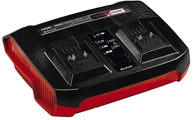 Auf Lager Versand durch AmazonOriginal Einhell Ladegerät Power X-Twincharger 3A -Change (Li-Ion, gleichzeitiges Laden von 2x 18V Akkus, permanente Akkuüberwachung + int. Lademanagement, 6-fache Zustands-LED-Anzeige)
