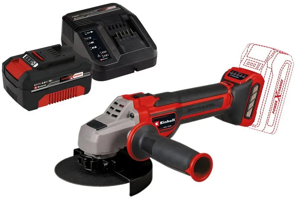 Zustand: Neu - Schleifer - Einhell - TP-AG 18/125 CE Q - - Leistung - Der Einhell Professional Akku-Winkelschleifer TP-AG 18/125 CE Q ist Teil der Power X-Change Familie und liefert kabellos dieselbe Leistung wie ein 900 Watt-Werkzeug mit Kabel. Regulierbare Leistung - Per Drehzahlregelung mit praktischer LED-Anzeige kann die Leistung materialgerecht zwischen 3.000 und 10.500 Umdrehungen pro Minute angepasst werden. Bürstenloser Motor - Der wartungsarme und kraftvolle Brushless-Motor sorgt für maximale Leistung bei längerer Laufzeit im Vergleich zu herkömmlichen Kohlebürstenmotoren. Konstantelektronik - Die Konstantelektronik sorgt für beständige Leistung ohne Drehzahlverluste, damit der Winkelschleifer auch unter hoher Belastung zuverlässig arbeitet. Ohne Trennscheibe - Der Winkelschleifer wird mit Trennschutz, aber ohne Trennscheibe geliefert. Er kann mit Trennscheiben bis Ø 125 mm für max. 33 mm Schnitttiefe verwendet werden. Schutz - Für maximale Sicherheit sorgen der integrierte Trennscheibenschutz mit Schnellverstellung, der Wiederanlaufschutz, der Überlastschutz und der Softstart, der Motor und Akku schont. Lieferung inkl. Akku - Der Einhell Akku-Winkelschleifer TP-AG 18/125 CE Q Li wird inkl. 4,0 Ah PLUS Power X-Change Akku und 3 A Ladegerät geliefert. - bei Amazon.de Ein gutes Kit-Angebot mit einem 4,0 Ah Akku, ideal für Anwender, die eine sofort einsatzbereite Lösung suchen. ![]() ![]() Einhell TP-AG 18/125 CE Q Li Kit inkl. 1 x 4,0 Ah