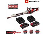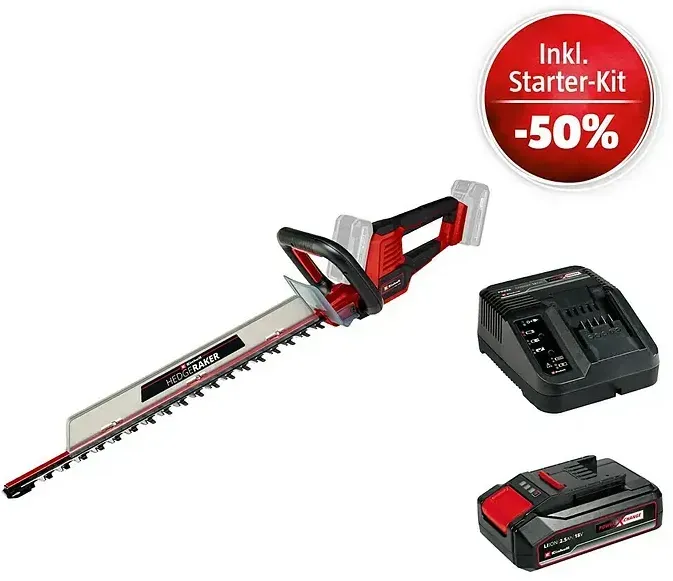 Einhell - EAN: 4066738035086 - Einhell Akku-Heckenschere GE-CH 36/61 Li-Solo Power X-Change (36 V, 61 cm Schnittlänge, 26 mm Zahnabstand, inkl. Schnittgutsammler, ohne AkkuArtikelbeschreibungDie Einhell Akku-Heckenschere GE-CH 36/61 Li-Solo holt das Beste aus dem Garten und dem heimischen Grün, und das in jedem Winkel. Dank Power X-Change-Technologie ist die Freiheit kabellos, die flexible Heckenschere wird betrieben mit den hochwertigen Lithium Ionen-Akkus, die in über 200 Geräten der Einhell-Systemfamilie verwendbar sind. Ein Umwelt-Plus: Abgase gehören der Vergangenheit an - aber auch der Lärm und Elektrokabel stellen keine Gefahrenquelle mehr beim Einsatz dar. Zum Betrieb sind 2x18V Batterien notwendig. Qualität und Langlebigkeit bieten die Messer aus lasergeschnittenem und diamantgeschliffenem Stahl. Ebenso ist das Metallgetriebe auf eine lange Lebenszeit ausgelegt. Der ergonomische, schmale Frontgriff mit Mikro-Schalter sorgt für eine bequeme Arbeitsweise auch bei längeren und widrigeren Einsätzen. Ausgestattet ist die Akku-Heckenschere mit einem Schnittgutsammler und einer Alu-Messerabdeckung sowie einem Stoßschutz mit Halterung für die Wandmontage. Der stabile Köcher ermöglicht einen sicheren Transport und eine sorgenlose Lagerung. Die Lieferung erfolgt ohne Akku und Ladegerät der Power X-Change-Reihe, diese sind separat erhältlich, zum Beispiel als praktisches Starter-Set. Mitglied der Power X-Change Familie, 2x18V Batterien notwendigMesser aus lasergeschnittenem ... Dieses Angebot ist empfehlenswert, da es ein Maschinenpaket mit der Akku-Heckenschere GE-CH 36/61 und einem Starter-Kit zu einem fairen Preis anbietet, ideal für Einsteiger. ![]() ![]() Einhell Power X-Change 18V Maschinenpaket (Akku-Heckenschere GE-CH 36/61 + Starter-Kit)