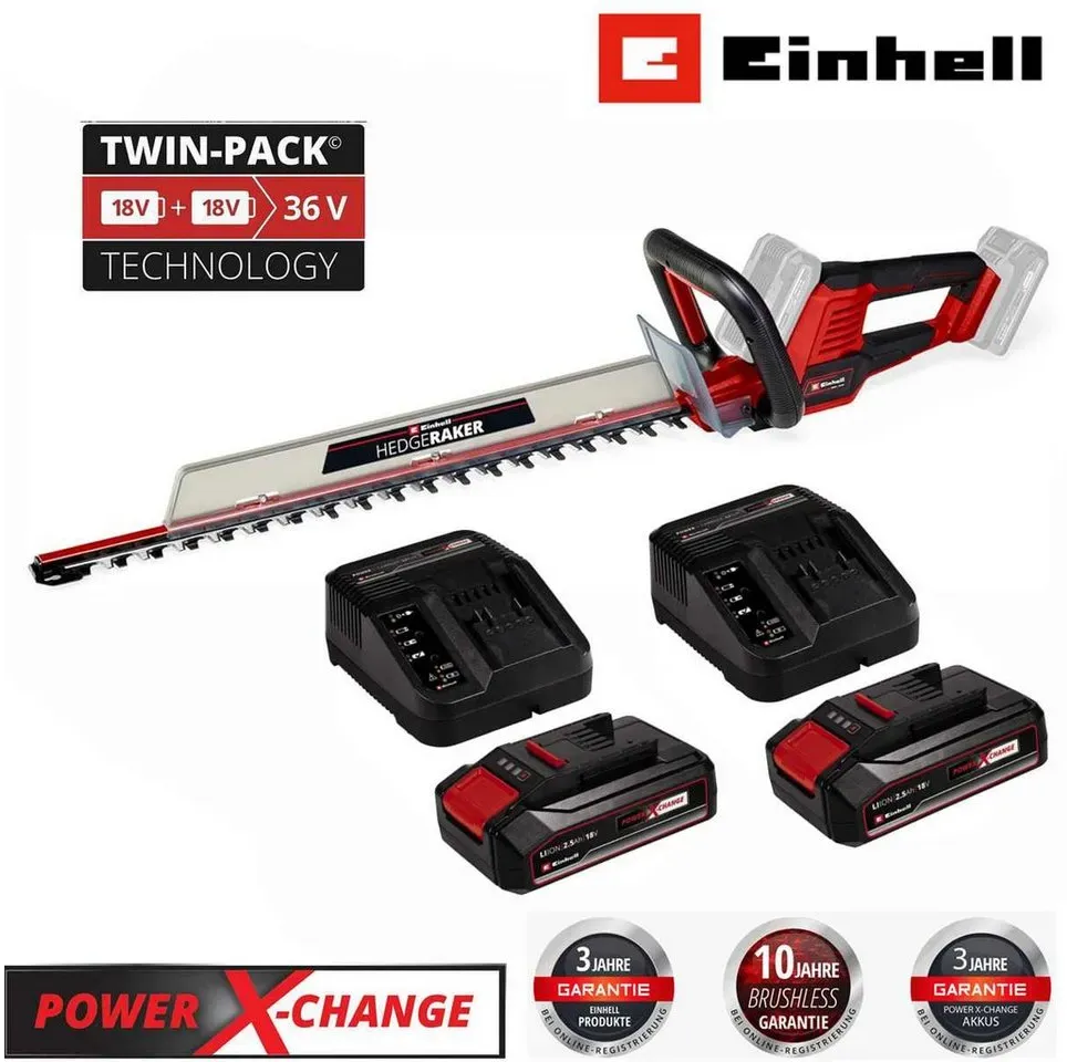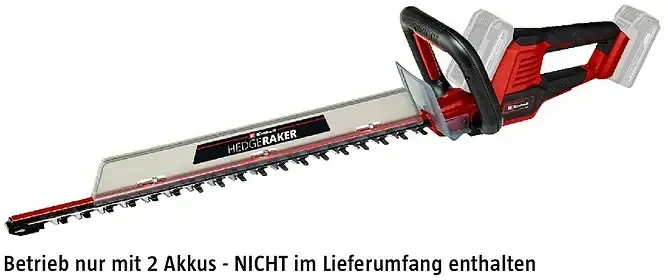 Einhell - EAN: 4066738035116 - Einhell Akku-Heckenschere GE-CH 36/61 Li-Solo Power X-Change (36 V, 61 cm Schnittlänge, 26 mm Zahnabstand, inkl. Schnittgutsammler,mit Akku 2.5 und Ladegerät 2 x 18VArtikelbeschreibungDie Einhell Akku-Heckenschere GE-CH 36/61 Li-Solo holt das Beste aus dem Garten und dem heimischen Grün, und das in jedem Winkel. Dank Power X-Change-Technologie ist die Freiheit kabellos, die flexible Heckenschere wird betrieben mit den hochwertigen Lithium Ionen-Akkus, die in über 200 Geräten der Einhell-Systemfamilie verwendbar sind. Ein Umwelt-Plus: Abgase gehören der Vergangenheit an - aber auch der Lärm und Elektrokabel stellen keine Gefahrenquelle mehr beim Einsatz dar. Zum Betrieb sind 2x18V Batterien notwendig. Qualität und Langlebigkeit bieten die Messer aus lasergeschnittenem und diamantgeschliffenem Stahl. Ebenso ist das Metallgetriebe auf eine lange Lebenszeit ausgelegt. Der ergonomische, schmale Frontgriff mit Mikro-Schalter sorgt für eine bequeme Arbeitsweise auch bei längeren und widrigeren Einsätzen. Ausgestattet ist die Akku-Heckenschere mit einem Schnittgutsammler und einer Alu-Messerabdeckung sowie einem Stoßschutz mit Halterung für die Wandmontage. Der stabile Köcher ermöglicht einen sicheren Transport und eine sorgenlose Lagerung. Mitglied der Power X-Change Familie, 2x18V Batterien notwendigMesser aus lasergeschnittenem und diamantgeschliffenem StahlErgonomischer, schmaler Frontgriff mit Mikro-SchalterMetallgetriebe für eine lange ... Dieses Angebot ist empfehlenswert, da es die Einhell Heckenschere GE-CH 36/61 Li mit 2 x 2.5 Ah Akkus und 2 Ladegeräten zu einem attraktiven Komplettpreis anbietet. ![]() ![]() Einhell Akku-Heckenschere Heckenschere GE-CH 36/61 Li- 36V mit 2 x Akku 2.5 Ah 2 x Ladegärt 36 V
