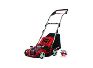 Einhell - EAN: 4006825662375 - Der Einhell Akku-Vertikutierer-Lüfter GE-SA 36/35 Li - Solo sorgt für tadelloses Grün im heimischen Garten. Dank Power X-Change-Antrieb herrscht kabellose Freiheit, die Rasenpflege gelingt in jedem Winkel des Gartens. Die TWIN-PACK Technologie nutzt die Kraft von zwei 18V PXC-Akkus. Angetrieben wird das Gerät von dem Einhell PurePOWER Brushless Motor. Dieser bürstenlose Motor bietet mehr Kraft und eine längere Laufzeit als herkömmliche Kohlebürsten-Motoren. Das durchdacht konzeptionierte 3in1-Kombi-Gerät ermöglicht das Vertikutieren, Lüften und Fangen. Dabei arbeitet sich die kugelgelagerte Messerwalze mit 16 robusten Edelstahlmessern in die Grasnarbe. Die ebenfalls kugelgelagerte Lüfterwalze ist mit 26 Krallen ausgestattet. Bequemes Arbeiten erlaubt die 3-stufige zentrale Arbeitstiefeneinstellung mit zusätzlicher Transportposition. Der klapp- und höhenverstellbare Führungsholm ist mit einem Schnellspannhebel ausgestattet und beinhaltet eine Parkposition. Ein Tragegriff ist zudem integriert. Die Räder wurden großflächig und damit rasenschonend konzipiert. Der große Fangsack hat ein Volumen von 28 Litern. Der Walzenwechsel erfolgt werkzeuglos. Das Kunststoffgehäuse aus schlagzähem Material ist wartungsfreundlich konzipiert. - bei voelkner.de - aus Yadore Produktdaten Dieses Angebot von baur.de für 194.78 Euro ist eine weitere gute Option im mittleren Preissegment. ![]() ![]() Akku-Vertikutierer / Lüfter EINHELL "Power X-Change GE-SA 36/35 Li-Solo", rot, B:51cm H:104,5cm T:102,7cm, Vertikutierer, ohne Akku und Ladegerät