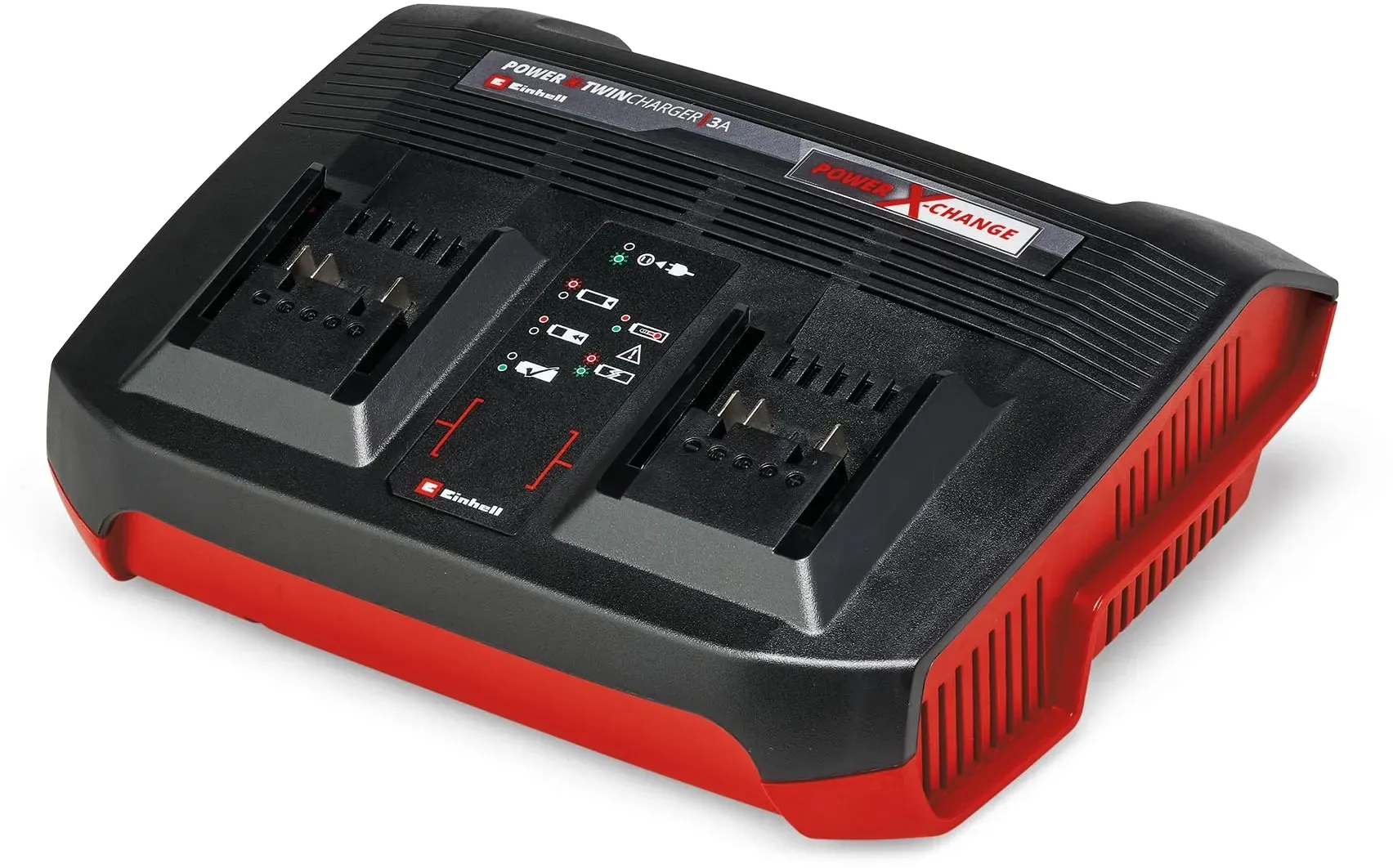 Auf Lager Versand durch AmazonOriginal Einhell Ladegerät Power X-Twincharger 3A -Change (Li-Ion, gleichzeitiges Laden von 2x 18V Akkus, permanente Akkuüberwachung + int. Lademanagement, 6-fache Zustands-LED-Anzeige)