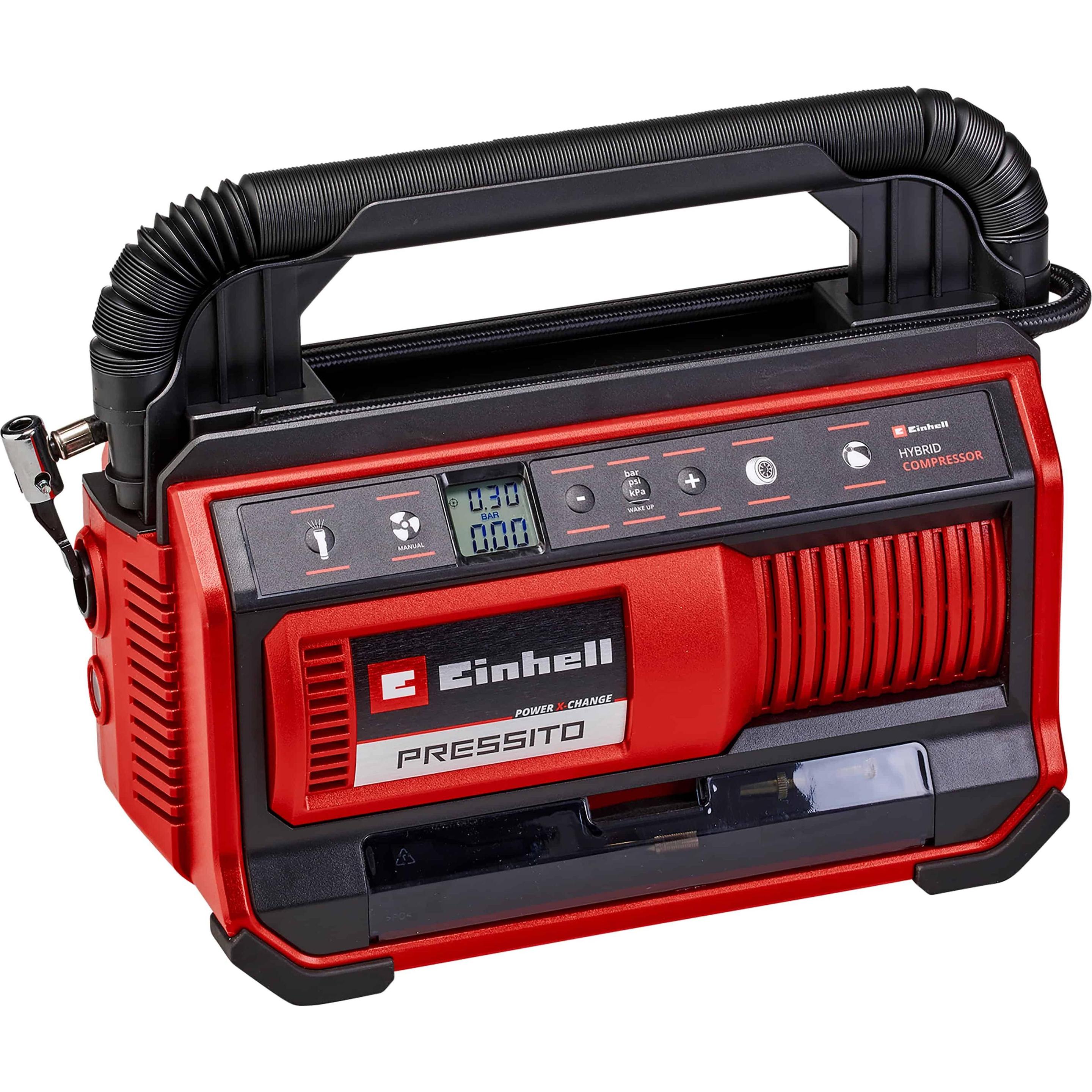 Einhell pressito 18 25 META PreisvergleichMit dem Meta-Preisvergleich suchen Sie gleichzeitig bei den großen Preisvergleich Portalen!Jetzt live Suche nach einhell pressito 18 25 starten! Einhell pressito 18 25 KaufberatungDer Einhell Pressito 18/25 ist ein ölfreier Hybrid-Akku-Kompressor (18 V Power X-Change oder Netzbetrieb), ideal für Aufpumpen von Reifen, Bällen (bis 11 bar Hochdruck) sowie Luftmatratzen (Niederdruck mit Saugfunktion).[1][4][5] Wichtige Kaufkriterien und zu beachtende Punkte