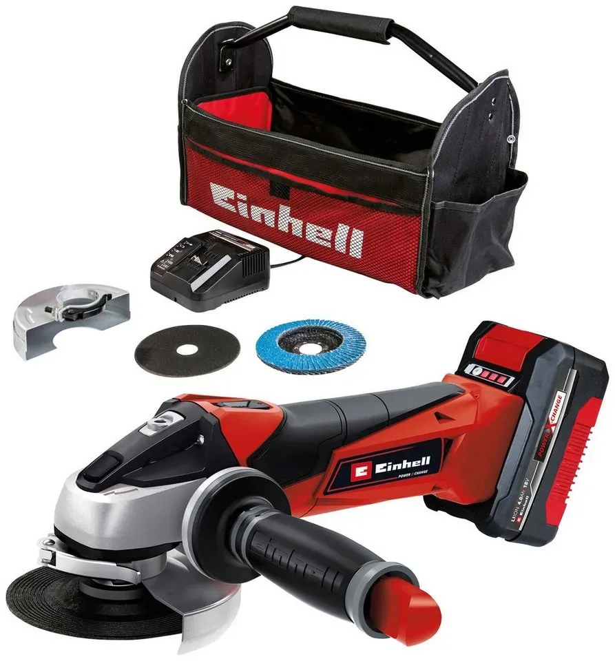 ![]() ![]() Einhell Akku-Winkelschleifer TE-AG 18/115 Li Power X-Change (18 V, Ø 115 mm, 28 mm Schnitttiefe, Softstart, ohne Trennscheibe, inkl. 4,0 Ah Akku und Ladegerät, Koffer)