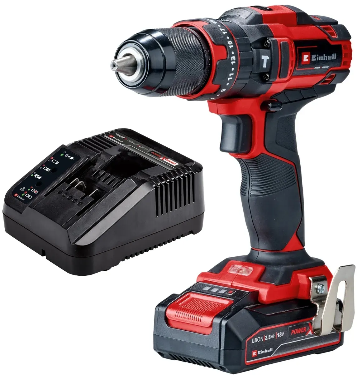 Auf Lager Versand durch AmazonEinhell Akku-Bohrschrauber TE-CD 18/45 3X-Li+22 Power X-Change (18 V, 45 Nm, Winkelaufsatz, Exzenter Aufsatz, 22-tlg. Bitset, 2,0 Ah-Akku, Ladegerät + E-Box)