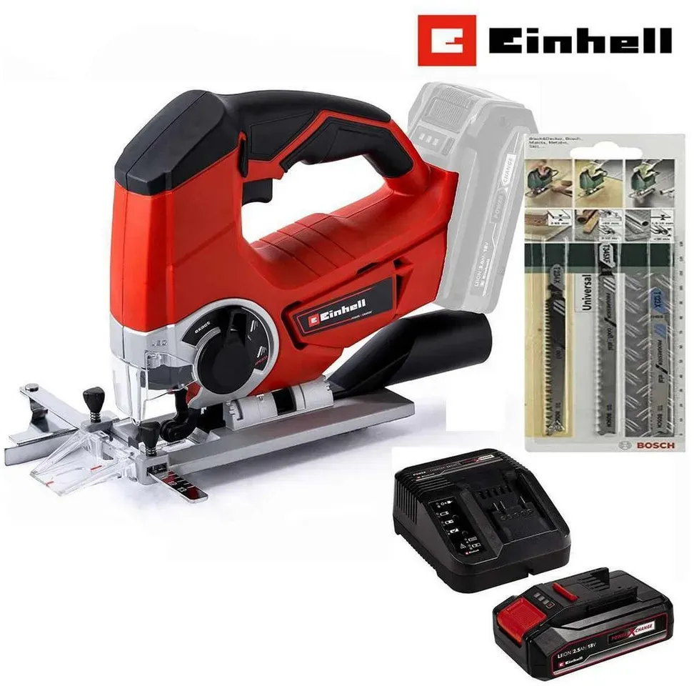 keine Angabe (Amazon Prime) Auf Lager Versand durch AmazonEinhell Akku-Stichsäge TE-JS 18/100 Li Power X-Change (18 V, 100 mm Schnitttiefe in Holz, 26 mm Hubhöhe, max. 45° Schrägschnitte, inkl. 4,0 Ah Akku und Sägeblatt)