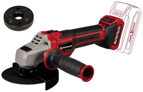 Einhell - EAN: 4006825668797 - Der EINHELL Professional Akku-Winkelschleifer TP-AG 18/125 CE Q Li-Solo dient zum Schleifen, Trennen, Schruppen und Polieren von Metall und Gestein. Angetrieben wird er von dem EINHELL PurePOWER Brushless Motor. Dieser bürstenlose, wartungsfreie Motor unterliegt keinerlei Verschleiß, bietet mehr Kraft und eine längere Laufzeit als herkömmliche Kohlebürsten-Motoren. Zwischen 3.000 und 10.500 U/min lässt sich die Drehzahl des Trennschleifers per Drehschalter in fünf Stufen flexibel an das jeweilige Material und die verschiedenen Anwendungen anpassen. Eine integrierte LED-Anzeige gibt Auskunft über die aktuelle Drehzahl und optimale Auslastung des Geräts. Dabei sorgt die Konstantelektronik für beständige Leistung ohne Drehzahlverluste, auch bei hoher Belastung. Die Schnellspannmutter ermöglicht den werkzeuglosen, schnellen Wechsel der Trennscheibe. Der Akku-Winkelschleifer TP-AG 18/125 CE Q Li erzielt mit Trennscheiben bis zu einem max. Durchmesser von 125mm bis zu 33mm Schnitttiefe. Der Scheibenschutz mit Schnellverstellung lässt sich an die jeweilige Arbeitsposition anpassen. Der kompakte Trennschleifer ist mit einem in zwei Positionen montierbaren Zusatzhandgriff und mit Softgrip-Flächen ausgestattet. Ein integriertes Staubschutzgitter schützt das Innere des Geräts vor Verschmutzung und erhöht in Kombination mit der intelligenten Luftführung die Lebensdauer. Zur Reinigung kann das Gitter einfach abgenommen werden. Der überlastschutz ... Ein Solo-Gerät zu einem fairen Preis, das sich für den flexiblen Einsatz eignet. ![]() Einhell Winkelschleifer, TP-AG 18/125 CE Q Li - Solo (125 mm)