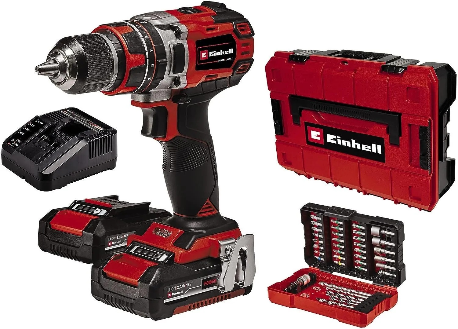 24 Händlerangebote bei billiger.de - Kategorie: Akkuschrauber - Einhell - Der Einhell Professional Akku-Bohrschrauber TP-CD 18/50 Li BL (2x2,0 Ah) ist ein leistungsstarkes Mitglied der flexiblen Power X-Change-Familie. Bei der grenzenlos untereinander kombinierbaren Power X-Change-Reihe können alle PXC-Akkus mit allen Systemgeräten kombiniert werden. Im Lieferumfang des Akku-Bohrschraubers sind zwei 2,0 Ah Power X-Change-Akkus sowie ein Schnellladegerät enthalten. Die Akkus mit hochwertiger Li-Ion-Technologie widerstehen der sonst batterieüblichen Selbstentladung, damit ist der Akku-Bohrschrauber stets einsatzbereit. Angetrieben wird das Gerät von dem Einhell PurePOWER Brushless Motor. Dieser bürstenlose Motor bietet mehr Kraft und eine längere Laufzeit als herkömmliche Kohlebürsten-Motoren. Die Umsetzung erfolgt durch ein 2-Gang-Getriebe zum kraftvollen Bohren und Schrauben. Für material- und anwendungsgerechtes Arbeiten sorgt die Drehzahl-Elektronik. Optimales Arbeiten in dunklen Bereichen ermöglicht die LED-Beleuchtung. Höchste Handlichkeit und einen festen, sicheren Halt bietet das ergonomische Design und der Softgrip. Die Lieferung erfolgt im praktischen Transport- und Aufbewahrungskoffer. - GTIN:4006825649345 Ein Premium-Komplettset mit zwei Akkus, Ladegerät, Koffer und Bit-Set, das eine Rundum-Lösung für anspruchsvolle Nutzer darstellt. ![]() ![]() Einhell TP-CD 18/50 Li-i BL+ 39 (2x2,0Ah) Power X-Change (Li-Ion, 18 V, 50 Nm, Schlagzahl 28.800 min-1, inkl. 2x 2,0Ah, Ladegerät, Koffer, 39-tlg. Bit-Set)
