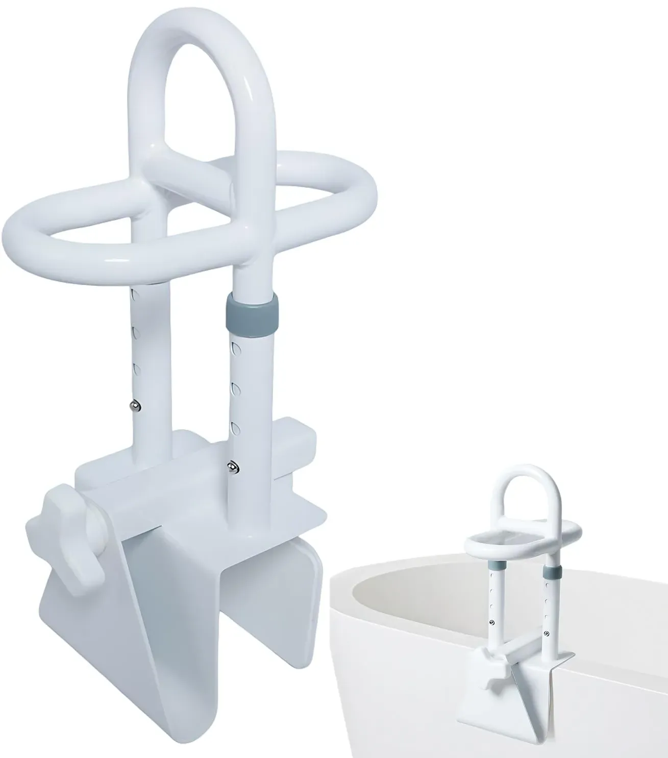 Auf Lager Versand durch AmazonBadewannen Einstiegshilfe für Senioren, Badewanneneinstiegshilfe, Griffstange für Wannen Rand mit Gummipolster, PE-Blasformmaterial, Bis 136 KG Belastbare Befestigung Ohne Bohren, Knopfverstellung