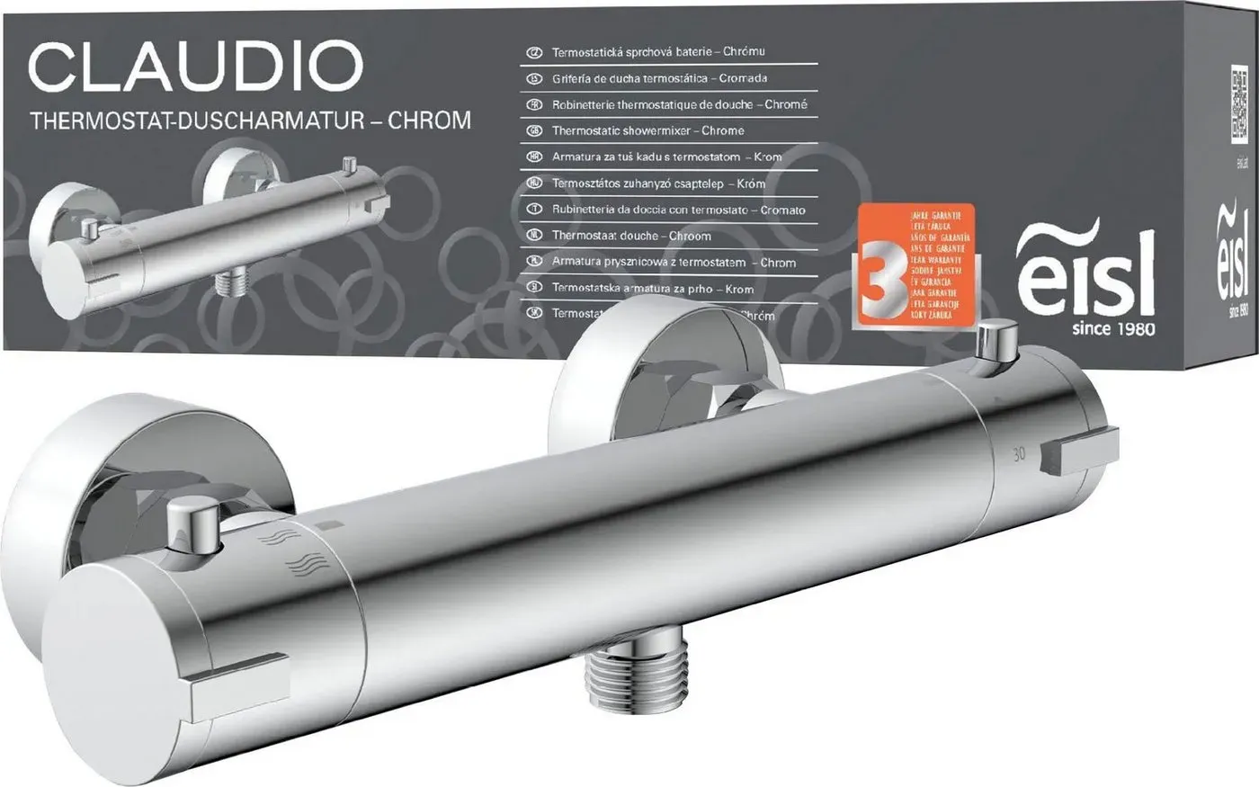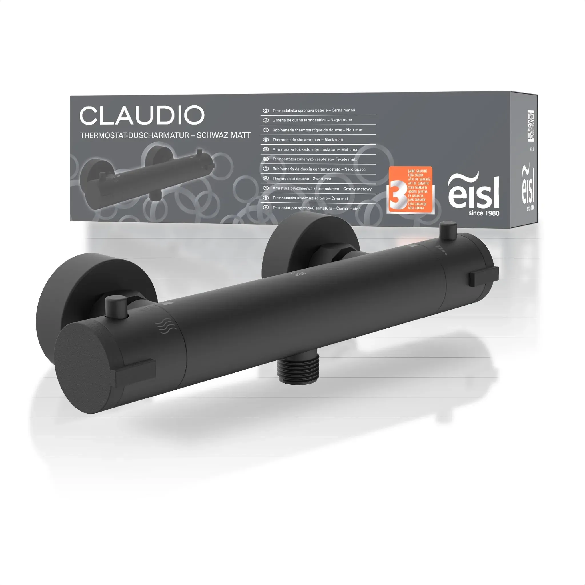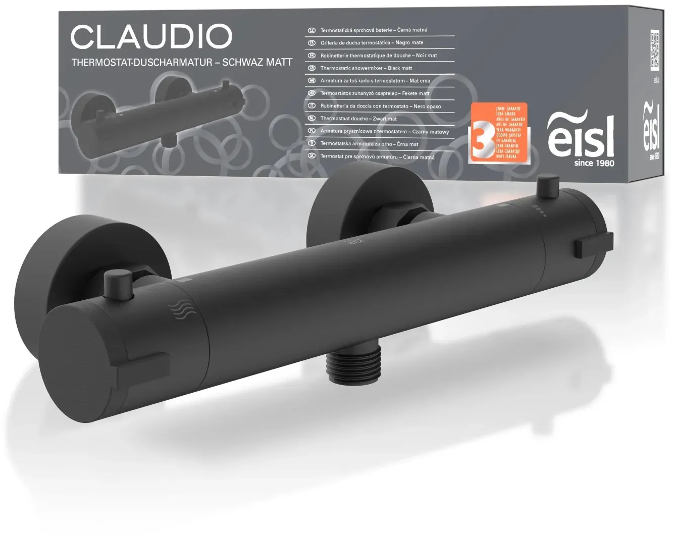 Zustand: Neu - Badewannen- & Duschsysteme - EISL Eisl Sanitär GmbH - CLT023ACR - EAN: 9002560798961 - 3︃£ðŸ‘ðˆððŸ: Du brauchst eine neue Badewannenarmatur und am liebsten auch gleich die passende Brause mit Schlauch und Halter dazu? Genau das bietet dir das Wannenthermostat-Set von EISL mit einer extra Portion Wellness! ðŸ‘ð–ð„ð‹ð‹ðð„ð’ð’ ðˆðŒ ð’ð„ð“: Neben der Thermostat Badewannenarmatur ist ein matter Silverflex-Schlauch (1,5m), eine Handbrause mit verstellbaren Strahlarten und der passende Wandhalter enthalten. Mach neu! 🌡ï¸ð“ð‡ð„ð‘ðŒðŽð’ð“ð€ð“: mit der Wannenarmatur kannst du Wasserdurchfluss- und Temperatur genaustens justieren, ein kleiner 'stop' bei 38 Grad warnt dich vor zu heißem Wasser. Durch die separaten Griffe bleibt deine Lieblingstemperatur konstant, auch wenn du das Wasser zum einseifen zudrehst. 🛠ï¸ðƒðˆð˜: Kein Klempner? Kein Problem! Das mitgelieferte Montageset mit allen Montagekomponenten machen die Installation der Wannenarmatur für dich zum Kinderspiel. Durch die justierbaren S-Anschlüsse kannst du ganz einfach die Anschlüsse deiner alten Armatur nutzen. ˜Žï¸ð„ðˆð’ð‹ entwickelt seit fast 3 n Produkte für den Sanitärbereich. An unserem Standort in Wallenhorst erreichst du uns bei Fragen, Reklamationen und Anregungen unter der Nummer: +49 (0) 5407-81529-03. - Verkäufer: Burgtal GmbH im amazon.de Marketplace Eine hochwertige Thermostat-Duscharmatur in Schwarz Matt, die für ein elegantes Badezimmerambiente sorgt. ![]() ![]() Eisl Thermostat Duscharmatur Claudio Schwarz Matt