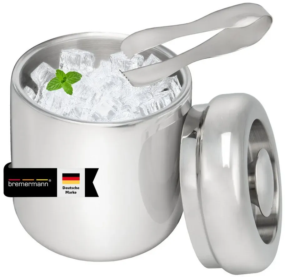 ![]() ![]() bremermann Eiswürfelbehälter Eiswürfelbehälter mit Zange, Edelstahl-Eiskübel mit Deckel 1,5l, rund silberfarben