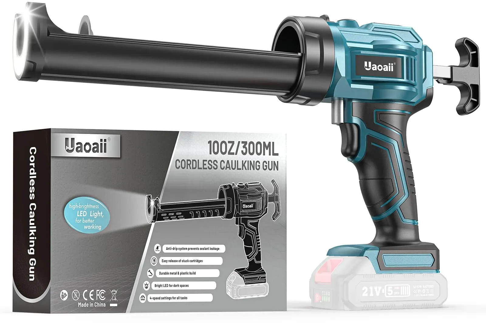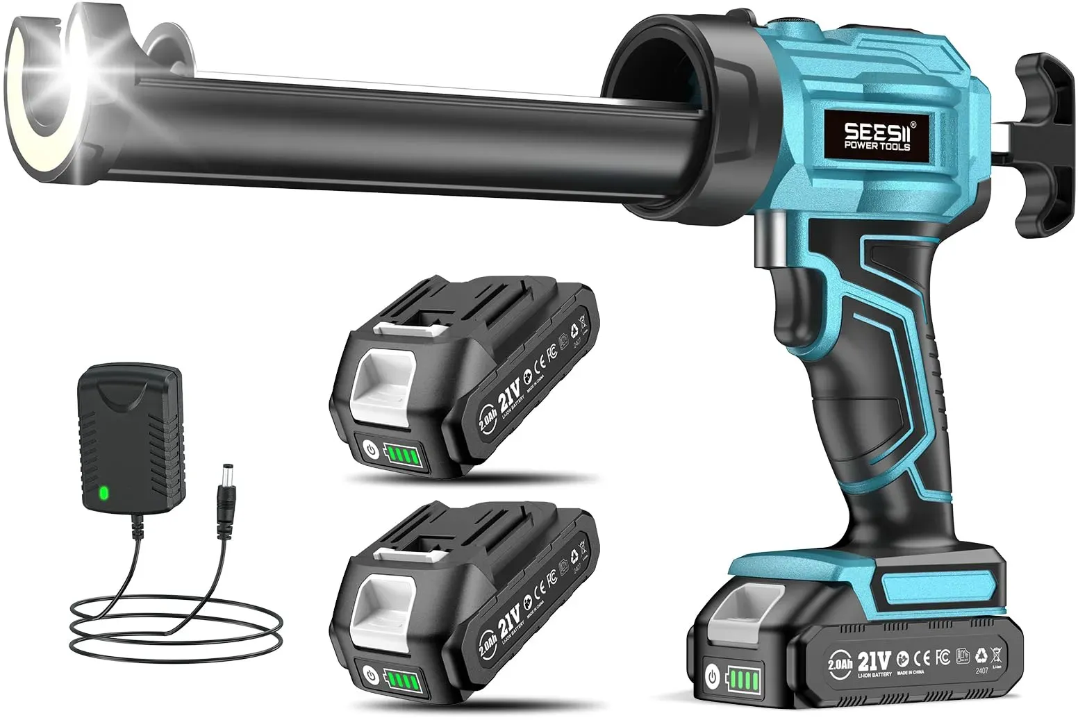 Auf Lager Versand durch AmazonONEMANA Silikonpistole mit Batterie, elektrische Pistole für Silikon und Aufkleber, 20 V, 6 Geschwindigkeitsstufen, Anti-Tropf, maximale Kraft 6500 N, für 10 oz/300 ml Kartuschen mit 2,0 Ah Akku und