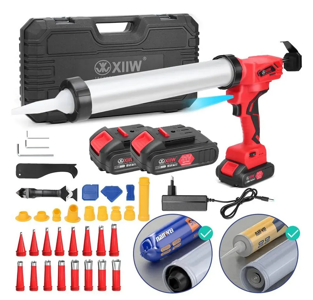 Gesamtsortiment Baumarkt + Garten Werkzeug + Werkstatt Handwerkzeug Hilfswerkzeuge Kartuschenpistole + Fettpresse Handwerkzeuge - EAN:6952909078335 - 24V Akku einlegen und loslegen: Mit der Dichtungspistole starten Sie sofort mit den Bauarbeiten frei und ohne Kabel - Akku und Ladegerät sind nicht im Lieferumfang enthalten. Die elektrische Dichtungs- und Klebepistole wartet mit einer Auspresskraft von bis zu 650 Pfund bei einer maximalen Geschwindigkeit von 53 cm/min auf - und das bei sechs verschiedenen Geschwindigkeitsstufen. Die Akku-Kartuschenpresse verfügt über eine Anti-Tropf-Funktion, sodass der Tauchstab automatisch zurückgezogen wird und verhindert, dass überschüssiger Klebstoff austritt. Die elektronische Kartuschenpresse erledigt zuverlässig jede Aufgabe - egal ob zum Aufbringen von Silikon, Montagekleber oder Acryl - Sie sind bestens gewappnet. Die Greenworks 24V Akkus von 2Ah bis zu leistungsstarken 4Ah sind vielseitig einsetzbar und mit vielen Produkten aus dem Haus Greenworks im Bereich Garten und Werkstatt kompatibel. - gefunden von Kelkoo Die Xiiw elektrische Kartuschenpresse ist ein umfassendes Set mit zwei Akkus und viel Zubehör, das für professionelle Anwendungen geeignet ist. ![]() Xiiw - Elektrische Kartuschenpresse Silikonspritze mit 2 Akku (21V 2 Ah), 7840N Kartuschenpistole mit led, 16X Dichtungsdüse, 6X Ersatzbasis, 0-32