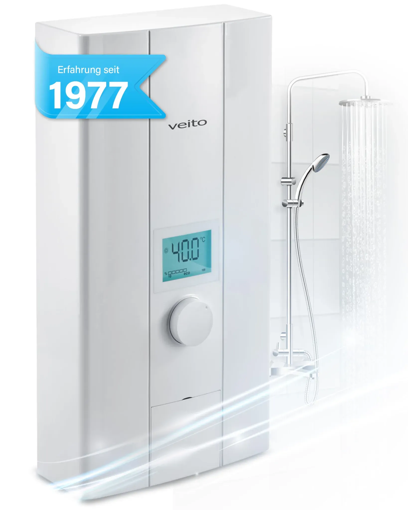 EEK: B - Kategorie: Durchlauferhitzer - Klarstein - GTIN:4060656524301 - SOFORT HEISSES WASSER: Der Wasser-Durchlauferhitzer von Klarstein ist elektrisch und hocheffizient. Dieser 30 l Durchlauferhitzer liefert dir endlos heißes Wasser, kein Vorheizen ist erforderlich und das Untertischgerät ist in 3-5 sec aufgeheizt. EFFIZIENT UND SPARSAM: Dieser elektrische Untertisch-Durchlauferhitzer eignet sich in der Küche, im Badezimmer, in der Dusche und unter der Spüle und sorgt für eine angenehme Temperatur, wenn du deine Hände, dein Geschirr oder deine Kleidung wäschst. EINFACHE INSTALLATION: Genieße unseren Elektro-Durchlauferhitzer für eine besonders heiße Dusche. Unser elektrischer Durchlauferhitzer ist schnell installiert und im Vergleich zu anderen Boilern erfordert dieser Untertisch-Boiler kaum Wartung. KRAFTVOLL UND VIELSEITIG: Entdecke die Kraft von diesem kompakten Durchlauferhitzer. Dieser Warmwasserbereiter kann in engen Räumen wie im Badezimmer und der Küche installiert werden und eignet sich sowohl für private als auch für gewerbliche Räume. ELEKTRISCH ABER SICHER: Unser Durchlauferhitzer und Wasserboiler sind getestet und so konzipiert, dass elektrische Lecks und Korrosion der Wasserleitungen verhindert werden. Zudem verfügt der Boiler über einen Trockenbrand- und überhitzungsschutz. - 185,99 Euro bei Amazon Marketplace Home - gefunden von billiger.de Dieser Veito Blue S Durchlauferhitzer mit 21 kW und LCD-Display ist eine energieeffiziente und leistungsstarke Option für sofortiges Warmwasser. ![]() ![]() Veito Blue S Elektrischer Durchlauferhitzer - LCD-Display - 21 kW - Energiesparend - Sofort heißes Wasser