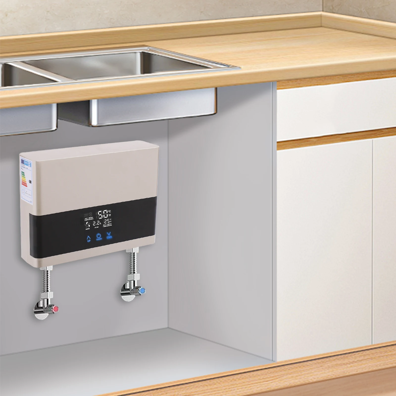 Kategorie: Sanitärinstallation - SHZICMY - GTIN:0733835825813 - Hohe Qualität: Das interne Heizrohr des Wasserhahns besteht aus 304 Edelstahl. ABS-Schale, hochtemperaturbeständig, weich und stark, nicht leicht zu platzen. Die Qualität ist besser und die Verwendung ist sicherer. Temperatur: 3 Sekunden schnelle Hitze. Mit einem 3000-W-Heizungsanschluss können Sie ohne lange Wartezeit warmes Wasser aufnehmen. Dualer heißer und kalter Gebrauch. Temperaturanzeige, die aktuelle Temperatur ist auf einen Blick klar und Sie können die Temperatur des fließenden Wassers steuern. Gut gestaltet: Intelligente LED-Digitalanzeige, kann die Temperatur in Echtzeit anzeigen, schnelles Aufheizen, heißes Wasser ist gebrauchsfertig, Eu-Stecker, Badezimmer und Küche können verwendet werden. Installation: Wenn Sie den Wasserhahn installieren, lassen Sie kaltes Wasser laufen, um auf Lecks zu prüfen, und schalten Sie dann den Strom zum Heizen ein. Installieren Sie das Produkt aufrecht. Installieren Sie es niemals horizontal oder diagonal. Es ist verboten, den Hahn ohne Erlaubnis zu ändern. Dieser Wasserhahn mit Durchlauferhitzer hat eine klare LED Digitalanzeige zur Anzeige der Wassertemperatur in Echtzeit, wodurch Sie die Temperatur nicht mehr mit den Händen fühlen müssen. - 19,00 Euro bei Amazon Marketplace Home - gefunden von billiger.de Dieses preisgünstige Modell ist ideal für die schnelle Warmwasserbereitung in der Küche und bietet eine einfache Lösung für den sofortigen Bedarf. ![]() Küchengerät, sofortiger Durchlauferhitzer, elektrischer Wasserhahn, Küche, sofortige Heizung, Leitungswasserheizung, Durchlauferhitzer