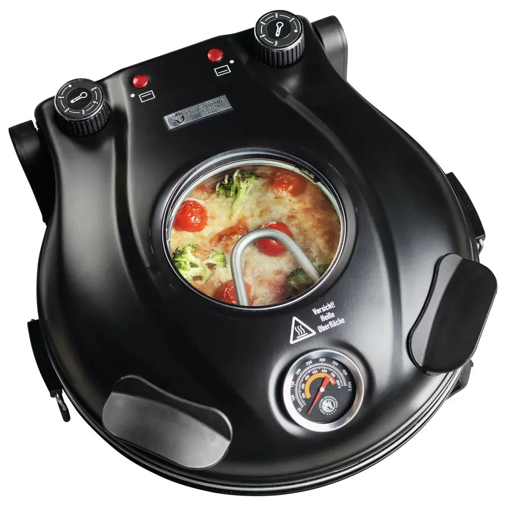 Zustand: Neu - Pizzaöfen - FOHERE FOHERE Pizza-Ofen Elektrisch - TO1702-GS - - Restaurant QualitätspizzaFür die perfekte Pizza bitte den Pizzaofen 15 Minuten vorheizen. Stellen Sie die Temperatur auf MAX ein und warten Sie, bis die Kontrollleuchte erlischt - dann ist die Vorheizphase abgeschlossen. Gegensatz zu herkömmlichen Öfen, die bei 300„ƒ enden, kann unser Pizzaofen Temperaturen von bis zu 400„ƒ erreichen. Bei dieser Temperatur ist Ihre Pizza in nur 3 Minuten knusprig gebacken und hat eine perfekte Kruste. Genießen Sie zu Hause Pizza in Restaurantqualität. Schnelles Aufheizen€‹Der Pizzamaker mit einem präzisen Temperatursensor ausgestattet. Im Vergleich zu herkömmlichen Ovensmit maximal 300°C erreicht der pizzaofen elektrisch volle 400°C! Zusätzliche Doppel-Heizelemente (oben/unten) ren gleichmäßige Hitzeverteilung - für perfekt gebackene Pizzen wie vom Profi. So erleben Sie Restaurant-Qualität in Ihrer eigenen Küche! Transparentes Fenster & tragbares DesignDieser Pizzabackofen ist ein leichtes und tragbares Design, geeignet für den Heim-/Außengebrauch, Pizzaofen ist mit einer Kontrollleuchte, Timer und einstellbarem Thermostat ausgestattet, einfach zu bedienen und den Backprozess zu kontrollieren. Mit einem einzigartigen transparenten Sichtfenster können Sie den Fortschritt des Pizzabackens in Echtzeit überwachen, um sicherzustellen, dass Sie die köstliche Pizza bekommen, die Sie sich vorgestellt haben. 12 Zoll Elektro PizzabackofenDas ... Dieser CHEF CUISINE Pizza Maker mit Keramikstein und Sichtfenster ist ideal für Pizza, Flammkuchen und Fladenbrot. ![]() ![]() CHEF CUISINE Pizza Maker mit Keramikstein Ø 31 cm ? Elektrischer Pizzaofen mit 1.200 Watt, Sichtfenster, Ober-/Unterhitze, inkl. Pizzaheber & Pizzaschneider ? Ideal für Pizza, Flammkuchen & Fladenbrot