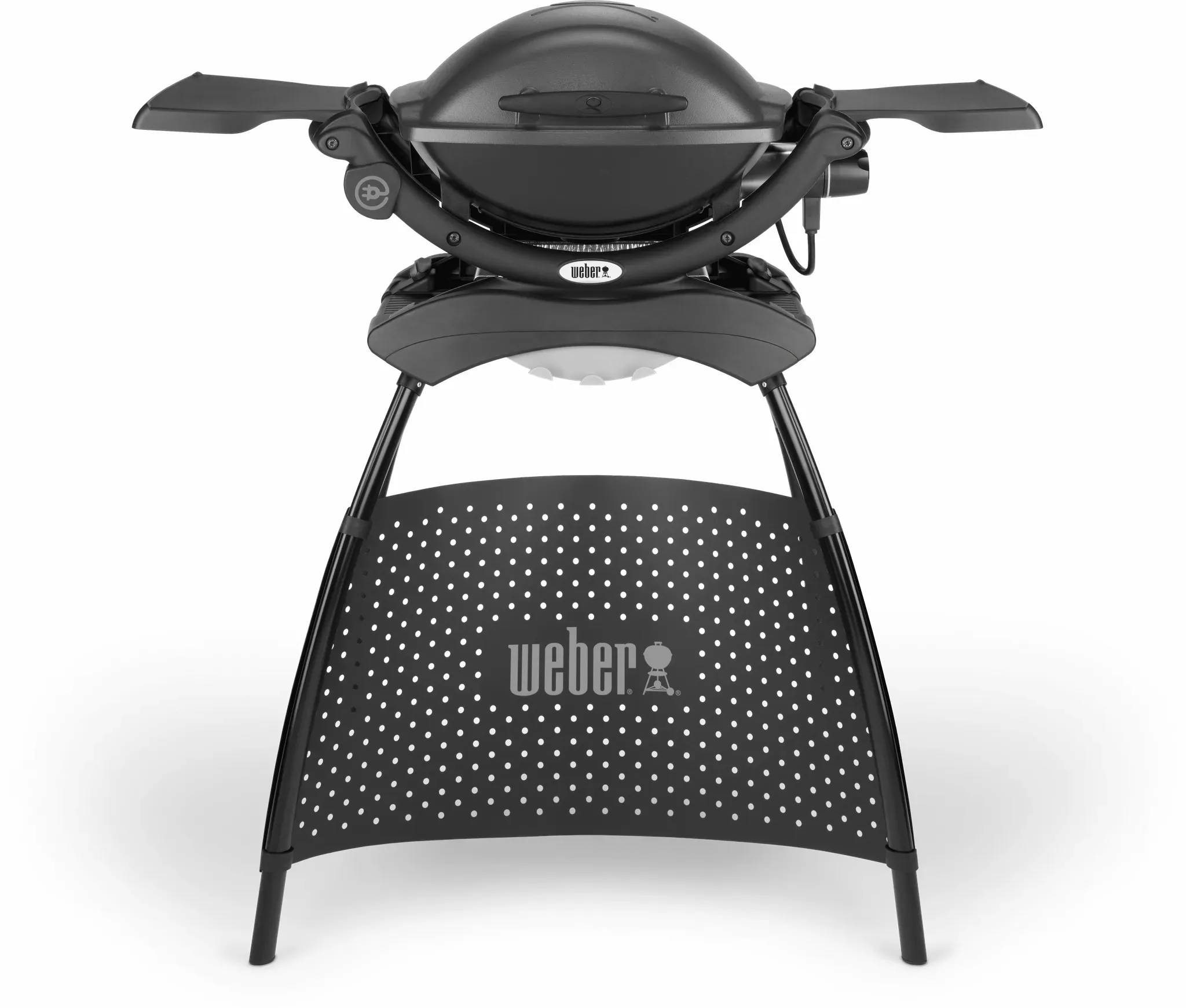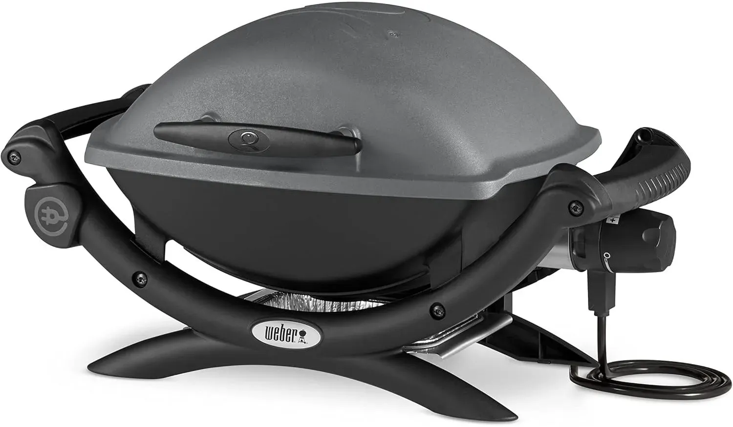 Auf Lager Versand durch AmazonWeber Q1400 Elektrogrill mit Stand, 43 x 32cm Grillfäche, portabler BBQ Grill, 2-geteilter porzellanemaillierter Guss-Grillrost, Aluminiumguss Deckel & Gehäuse - Dark Grey (52020879)