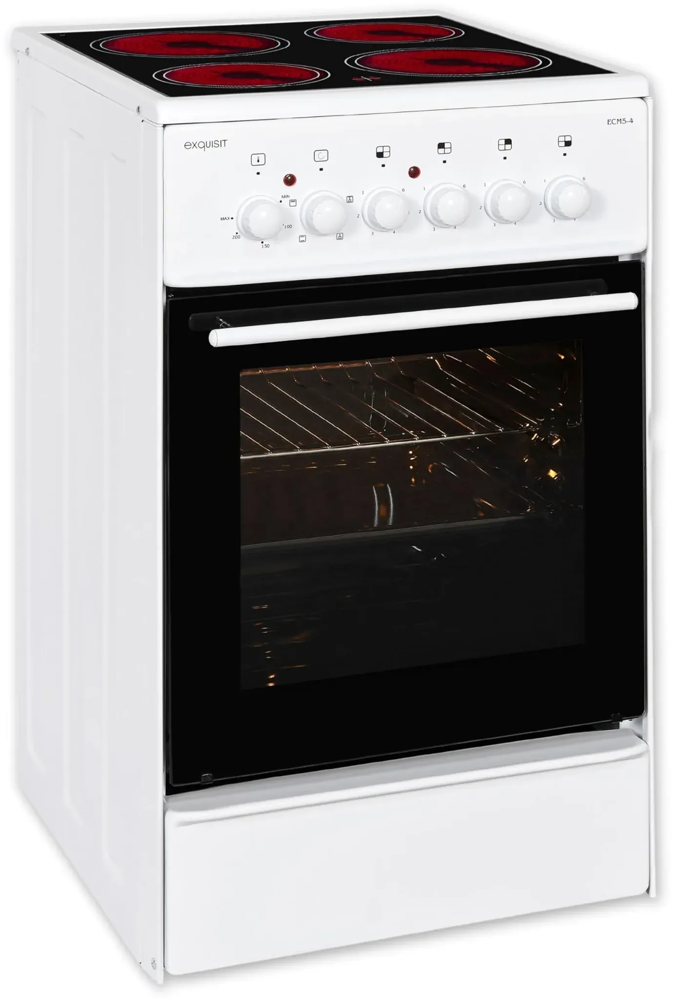 Zustand: Neu - Herde - SIEMENS Siemens - HK9S5A240 - EAN: 4242003807361 - Schnellaufheizung: Um Zeit zu sparen, können Sie mit dem Schnellaufheizen die Aufheizdauer verkürzen. Mit dieser Funktion erreicht der Standherd mit Induktionskochfeld schon nach 5 Minuten 175 °C. ecoClean: Der Backofen mit Kochfeld ist besonders leicht zu reinigen, dank der speziellen Beschichtung auf der Rückwand, die automatisch Fette absorbiert. cookControl10: Die Technologie bietet Ihnen 10 Automatikprogramme für perfekte Zubereitung Ihrer Gerichte. Die Programme übernehmen für Sie die idealen Einstellungen. 3D Heißluft: Die innovative Lüftermotor-Technologie verteilt die Wärme im Herd optimal und gleichwertig auf bis zu 3 Ebenen, sodass Sie perfekte Ergebnisse erzielen. softMove: Entspannte Bedienung des Backofens ohne Drücken und Ziehen. Der intelligente Dämpfungsmechanismus gewährleistet, dass sich die Backofentür sanft öffnet und schließt. - bei Amazon.de Dieser Exquisit Standherd mit Glaskeramik-Kochfeld und Umluft ist eine gute Wahl im mittleren Preissegment für 60 cm Breite. ![]() ![]() Exquisit Standherd ECM 6-4 | Standherd 60cm mit Glaskeramik Kochfeld | Ober- & Unterhitze | Grill | Umluft | Elektroherd freistehend 60 cm | weiss