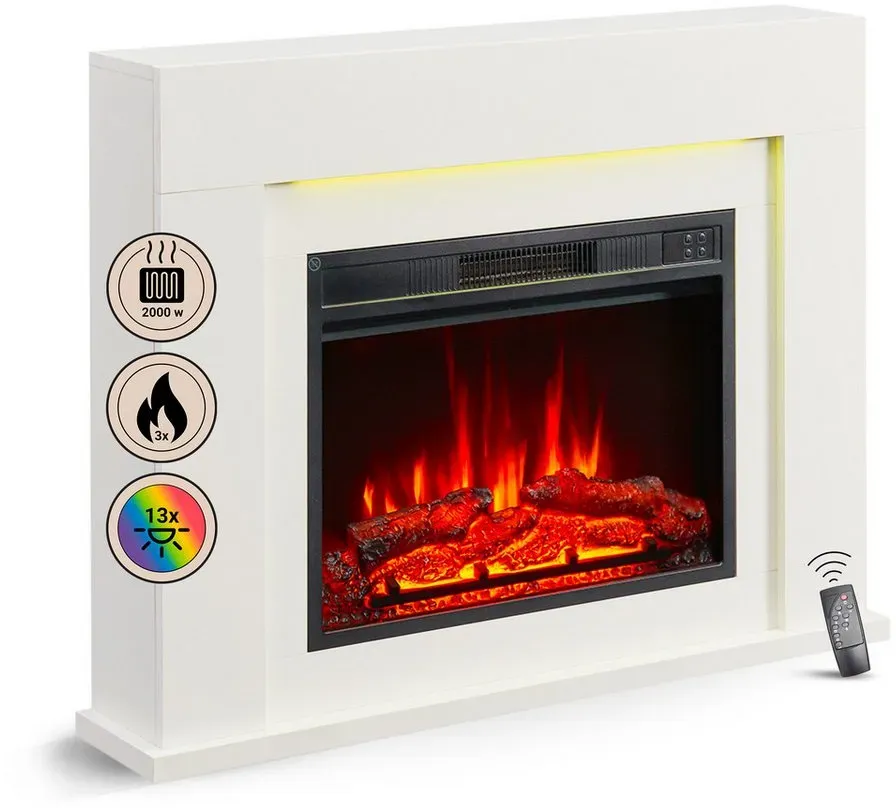 Zustand: Neu - Elektrische Kamine - Juskys Juskys Gruppe GmbH - 51202 - EAN: 4260565526148 - œ Sparsam & effektiv: Strom sparender Elektrokamin mit 2 Leistungsstufen 1000/2000 W; heizt Innenräume wie Wohnzimmer & Schlafzimmer mühelos auf 15 - 30 °C; Heizregulierung durch Thermostat œ Gemütlicher Flammeneffekt: Dekokamin mit flackerndem Kaminfeuer; Holzscheite & Glutbett aus Kunstharz; elektrischer Feuereffekt in 5 Helligkeitsstufen œ Dekorativer Zimmerkamin für Innen: Moderner Heizofen mit elegantem Kamin aus robustem MDF-Holz; passend für jedes Zimmer & Einrichtung; mit LED Ambientebeleuchtung in 13 Farben œ Umfangreiche Funktionen: Timer für wöchentliche Programmierung des Kaminofens; Überhitzungsschutz sorgt für mehr Sicherheit; einfache Steuerung mit der Fernbedienung œ Langlebig & robust: Hochwertiges & pflegeleichtes Material, sparsame & langlebige LEDs sowie der sichere & sparsame Heizlüfter sorgen für langanhaltende Freude am elektrischen Kamin - Verkäufer: Juskys im amazon.de Marketplace Der Balderia Elektrokamin Finn ist ein empfehlenswerter Standkamin mit LED-Ambientebeleuchtung und praktischer Offene-Fenster-Erkennung. ![]() ![]()