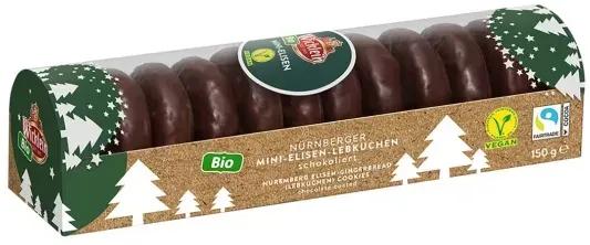 42.71 /kg - Kategorie: Kekse & Gebäck - Nürnberger Bio Originale - GTIN:4037848020217 - Bio Elisen-Lebkuchen, Oblatengröße 98 mm, natur, 70 g, einzeln verpackt - 2,99 Euro bei naturPur - gefunden von billiger.de Für Liebhaber von Mini-Lebkuchen und Bio-Produkten ist dieses schokolierte Angebot eine gute Wahl. ![]() ![]() Wicklein Mini-Elisen-Lebkuchen schokoliert bio