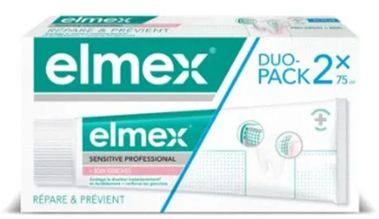 Kategorie: Zahnpflegeartikel - Elmex - GTIN:8718951545526 - Promotionsangebot als Duo - 12,64 Euro bei Amazon Marketplace Health & Personal Care - gefunden von billiger.de Ein praktisches Doppelpack der "Repair & Prevent" Zahnpasta, das für eine Weile ausreicht. Medpex.de CP GABA GmbH elmex Zahnpasta Sensi Prof RepairPrevent 2X75 ml