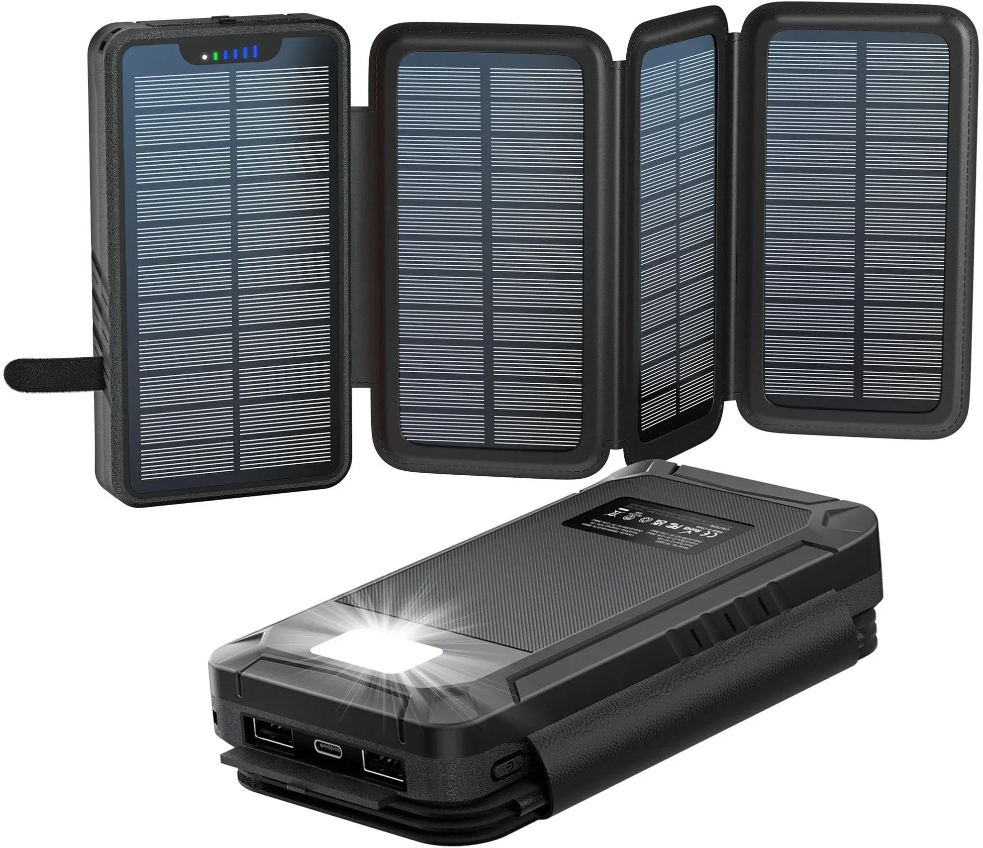 ![]() ![]() Solar Powerbank 26800mAh, elzle Solar Ladegerät mit 2 USB-A Ausgang & 1 USB-C Eingang, Outdoor Wasserfester Externer Akku mit 4 Solarpanels und Taschenlampe für Smartphones Tablets Camping
