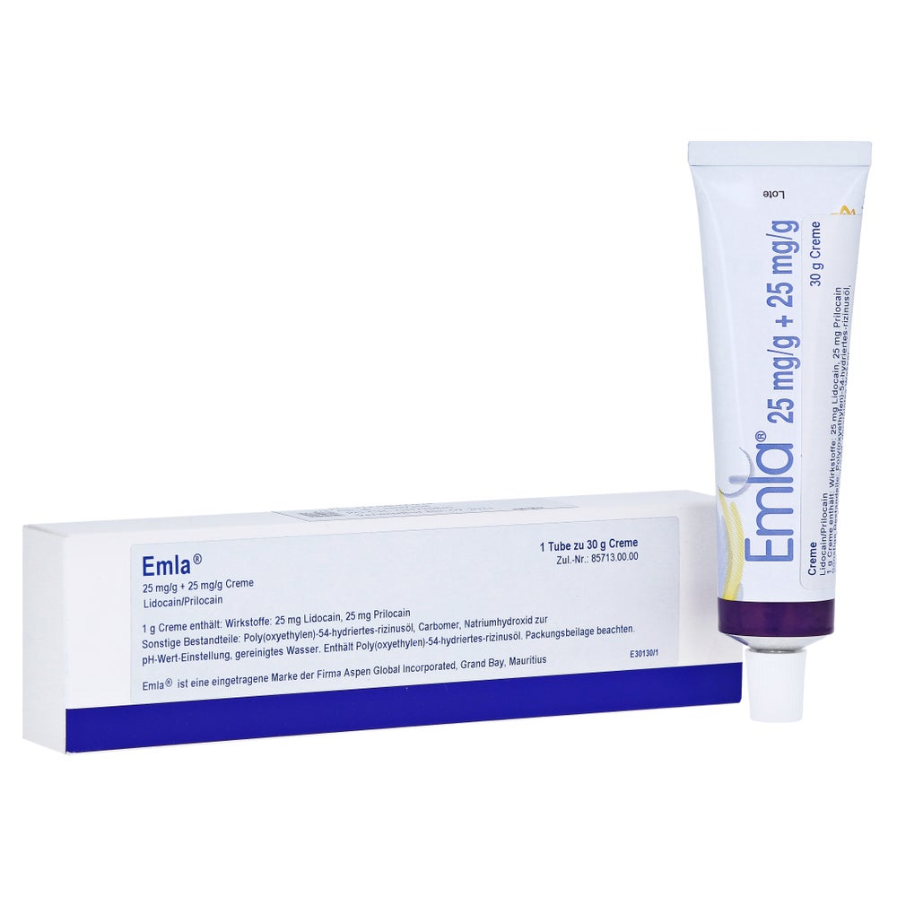 1.466,00€/kg - Kategorie: Arzneimittel - Aspen Germany GmbH - GTIN:4150132312505 - PZN:13231250 - Emla 25 mg/g + 25 mg/g Creme + 2 Tegaderm Pfl. 5 g von Aspen Germany GmbH günstig bei Ihrer Beraterapotheke bestellen - 7,33 Euro bei Beraterapotheke - gefunden von billiger.de Ein sehr günstiges Reimport-Angebot für 30g Emla Creme, ideal für den preisbewussten Einkauf. ![]() ![]() Emla Creme Inhalt: 30 g