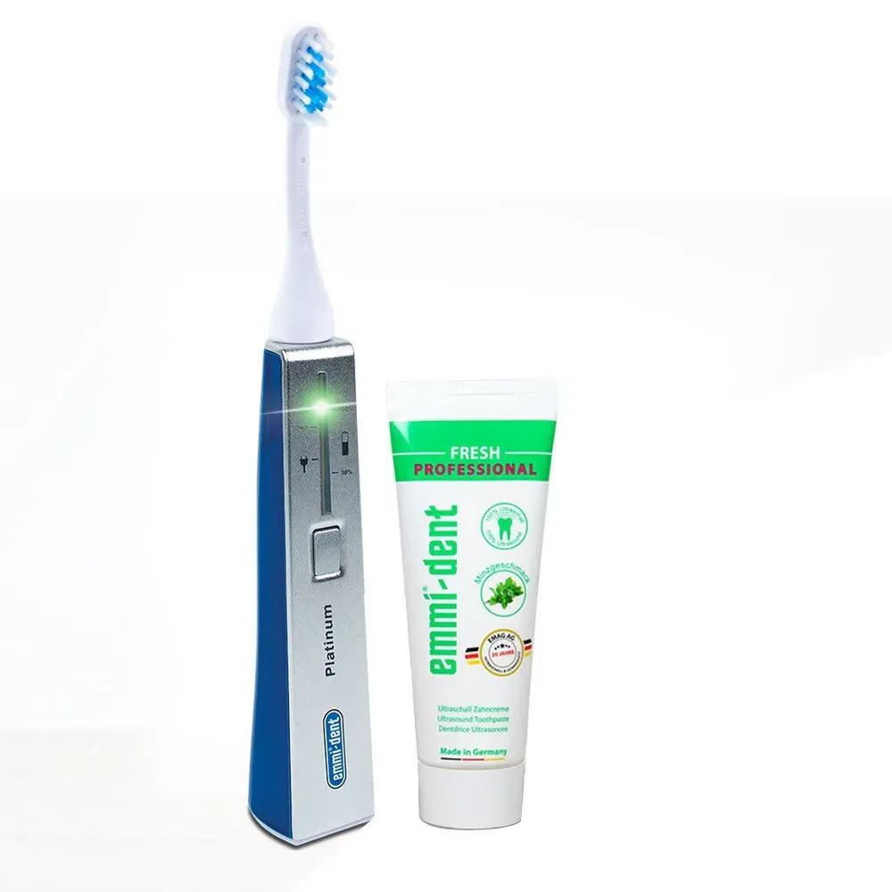 Verfügbarkeit: 3-6 Werktage - 179,89 €/Stück - Kategorie: Arzneimittel - Emmi-Dent - GTIN:4040513651203 - PZN:15637134 - Emmi-dent Platinum Ultrasch.zahnb.basis-set blau können in Ihrer Versandapotheke www.apo.com erworben werden. - 179,89 Euro bei apo.com - gefunden von billiger.de Dieses Angebot von eBay beinhaltet die Ultraschallzahnbürste und Zahnpasta, was es zu einem umfassenden Paket macht. ![]() ![]() Emmi-Dent Ultraschall - Ultraschall Elektrische eBay Zahnbürste Platin + Zahnpasta