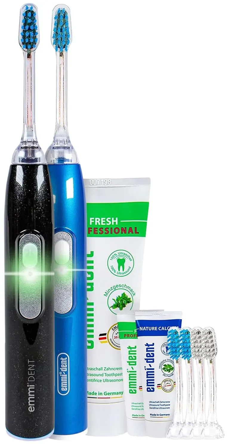 Dieses Angebot ist ein Beispiel für Angebote, die kürzlich auf dem eBay-Marktplatz in der Kategorie 260774 verfügbar waren. Bitte aktualisieren Sie die Suchergebnisse um aktuelle Angebote zu erhalten. Dieses Family-Set bietet zwei hochwertige Ultraschallzahnbürsten für die ganze Familie. ![]() ![]() emmi-dent 96 Mio. Schwingungen Metallic - elektrische Ultraschall Zahnbürste ohne Schrubben I Für empfindliche Zähne & Zahnfleisch I 12 Tage Akkulaufzeit mit Zahnpasta - Family-Set Black Diamond+Blau