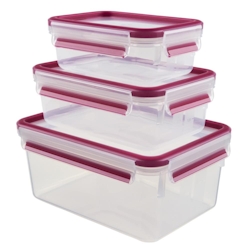 Versandbereit in 1-2 Tagen Versand durch AmazonEMSA Clip & Close Frischhaltedosen-Set, rechteckig, 0,55 L+1.00 L+ 2,20 L, Aufbewarungsboxen, 100 Prozent dicht, spülmaschinen-, gefrier-, mikrowellenfest, Himbeer, Transparent, 515584