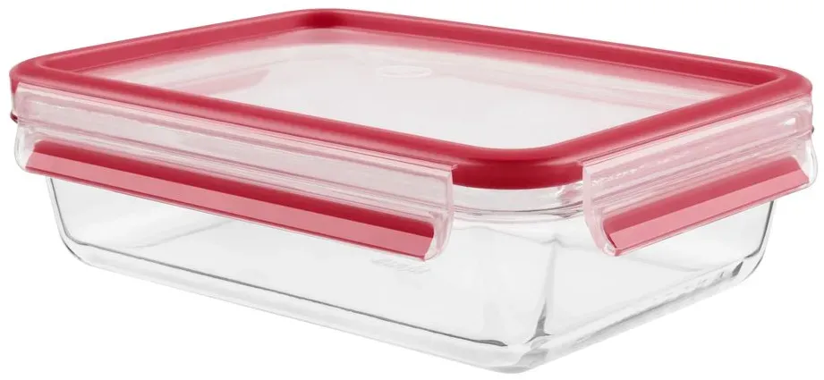 Auf Lager Versand durch AmazonEMSA Clip & Close Glas Frischhaltedose, rechteckig, 1,3 L, 100 Prozent dicht, rutschfestes Stapeln, Glasbehälter spülmaschinen-, gefrier-, backofen-, mikrowellenfest, Rot, Transparent, N10410