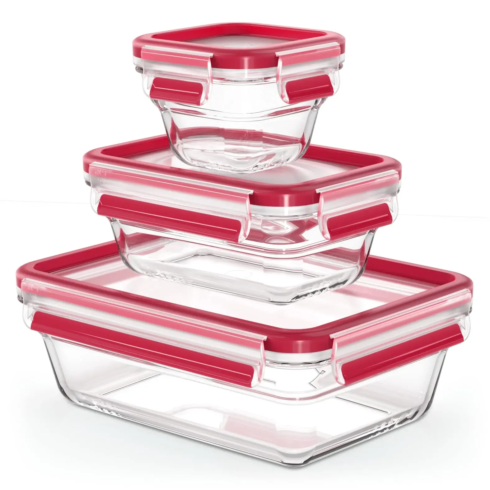 Auf Lager Versand durch AmazonEMSA Clip & Close Glas Frischhaltedosen-Set, rechteckig, 0,18 u. 0,45 u. 1,3 L, 100 Prozent dicht, Glasbehälter spülmaschinen-, gefrier-, backofen-, mikrowellenfest, Rot, Transparent, N10508