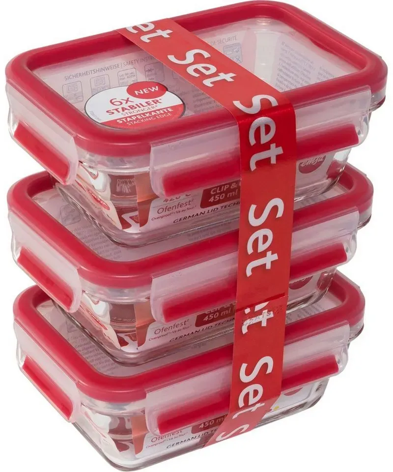 Kategorie: Vorratsdosen - Emsa - GTIN:4009049540153 - Lieferumfang , Emsa Clip&Close Glas Frischhaltedosen-Set 3-teilig + Zubehör laut Herstellerangabe, - 20,36 Euro bei OTTO - gefunden von billiger.de Eine große 3 L Frischhaltedose, die sich gut für Familien oder die Vorbereitung größerer Mengen eignet. ![]() ![]() EMSA (Groupe SEB Deutschland GmbH) EMSA Clip&Close Frischhaltedose Glas, eckig, Schnittfeste Vorratsdose aus hochwertigem Borosilikatglas, 1 Frischhaltedose, Fassungsvermögen: 3 Liter N1041200