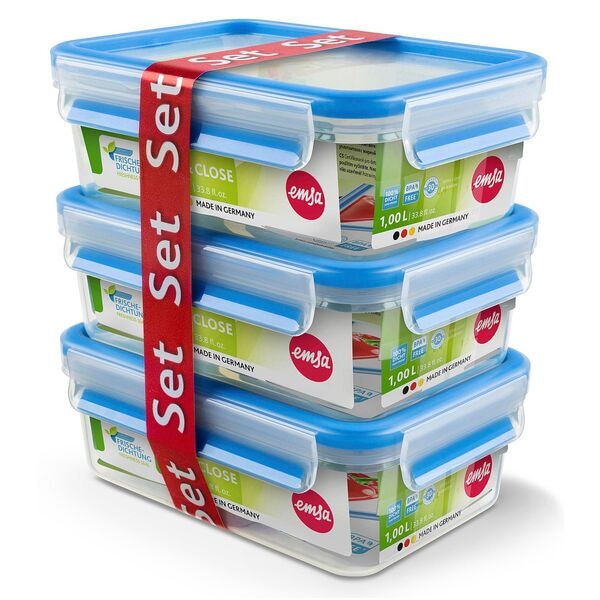 Der angezeigte Preis könnte seit dem letzten Update gestiegen sein - EAN: 4009049303185 - Frischhaltedose »CLIP CLOSE 8.0 L«, Besonderheiten: 100% unbedenklich, sogar für Babynahrung zertifiziert, 100% dicht durch spezielle Frische-Dichtung und damit auch für den Transport von flüssigen Lebensmitteln geeignet, integrierte Mengenskala,... - Zustand: NEW - bei OTTO Office - gefunden von Buycentral Dieses 3er-Set bietet eine praktische Auswahl an kleinen bis mittelgroßen Dosen für den täglichen Gebrauch zu einem sehr günstigen Preis. ![]() Emsa Frischhaltedosen Clip Close 3er-Set, Polypropylen, 0.5/ 1/ 2.3 L, rechteckig, blau
