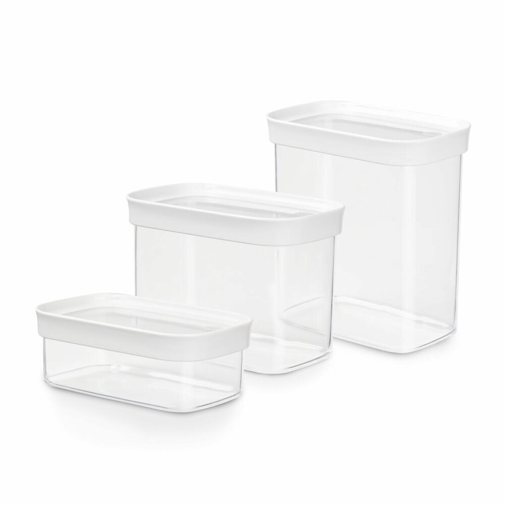 keine Angabe Nur noch 2 auf LagerEmsa 4er Set Stapelbare Vorratsdose für Trockenvorräte, Volumen 1.6 Liter, Rechteckig, Weiß/Transparent, Optima 513558 x 4