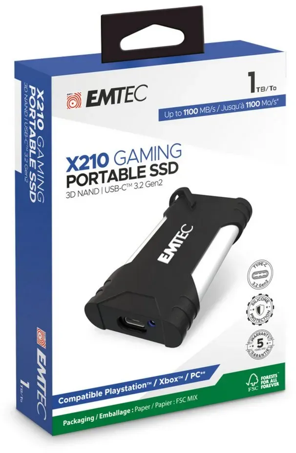 ![]() ![]() EMTEC X210G Gaming externe SSD (1 TB) 1100 MB/S Lesegeschwindigkeit, 900 MB/S Schreibgeschwindigkeit 1 TB