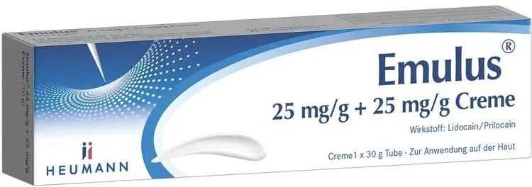 469,33 /kg - Kategorie: Arzneimittel - Heumann - GTIN:4260397486054 - PZN:11562126 - * Betäubt Hautbereiche - 14,08 Euro bei fliegende-pillen.de - gefunden von billiger.de Dieses Angebot von aliva.de ist preislich moderat und eine gute Wahl. ![]() ![]() EMULUS 25 mg/g + 25 mg/g 30 g Creme