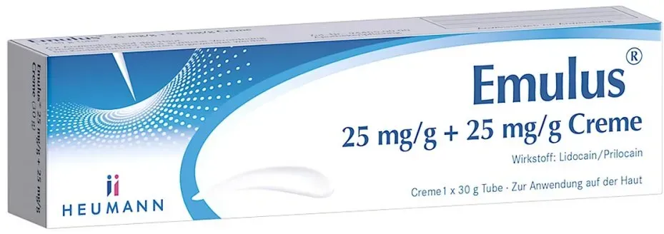 Emulus META PreisvergleichMit dem Meta-Preisvergleich suchen Sie gleichzeitig bei den großen Preisvergleich Portalen!Jetzt live Suche nach emulus starten! Emulus KaufberatungEmulus ist eine rezeptfreie Creme zur lokalen Betäubung der Haut mit den Wirkstoffen Lidocain (25 mg/g) und Prilocain (25 mg/g) in einer 30-g-Tube, hergestellt von HEUMANN PHARMA GmbH & Co. Generica KG.[1][2][3] Wichtige Hinweise zur Anwendung und SicherheitBeachten Sie folgende Punkte für eine sichere Nutzung: