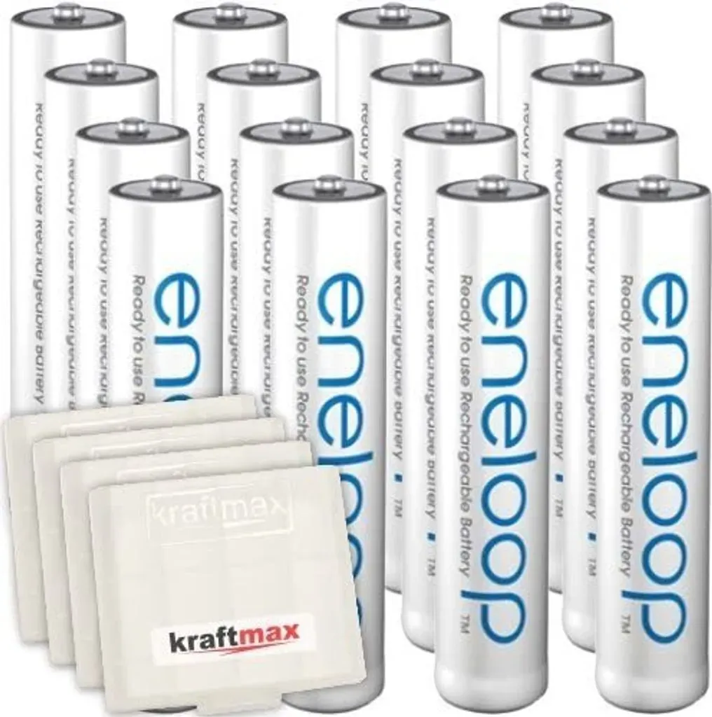 Auf Lager Versand durch Amazonkraftmax 16er Pack Panasonic Eneloop AAA/Micro Akkus - Neueste Generation - Hochleistungs Akku Batterien Akkuboxen V5